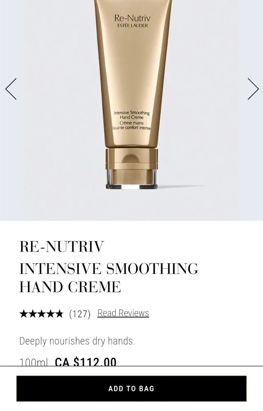 I have two brand new Estee Lauder Re-Nutriv Intensive Smoothing Hand Cremes for sale! These deeply nourish dry hands and come in a 3.4 fl oz / 100 ml size. Retails for $112 plus HST each Meeting at The Bay Subway Stations or nearby