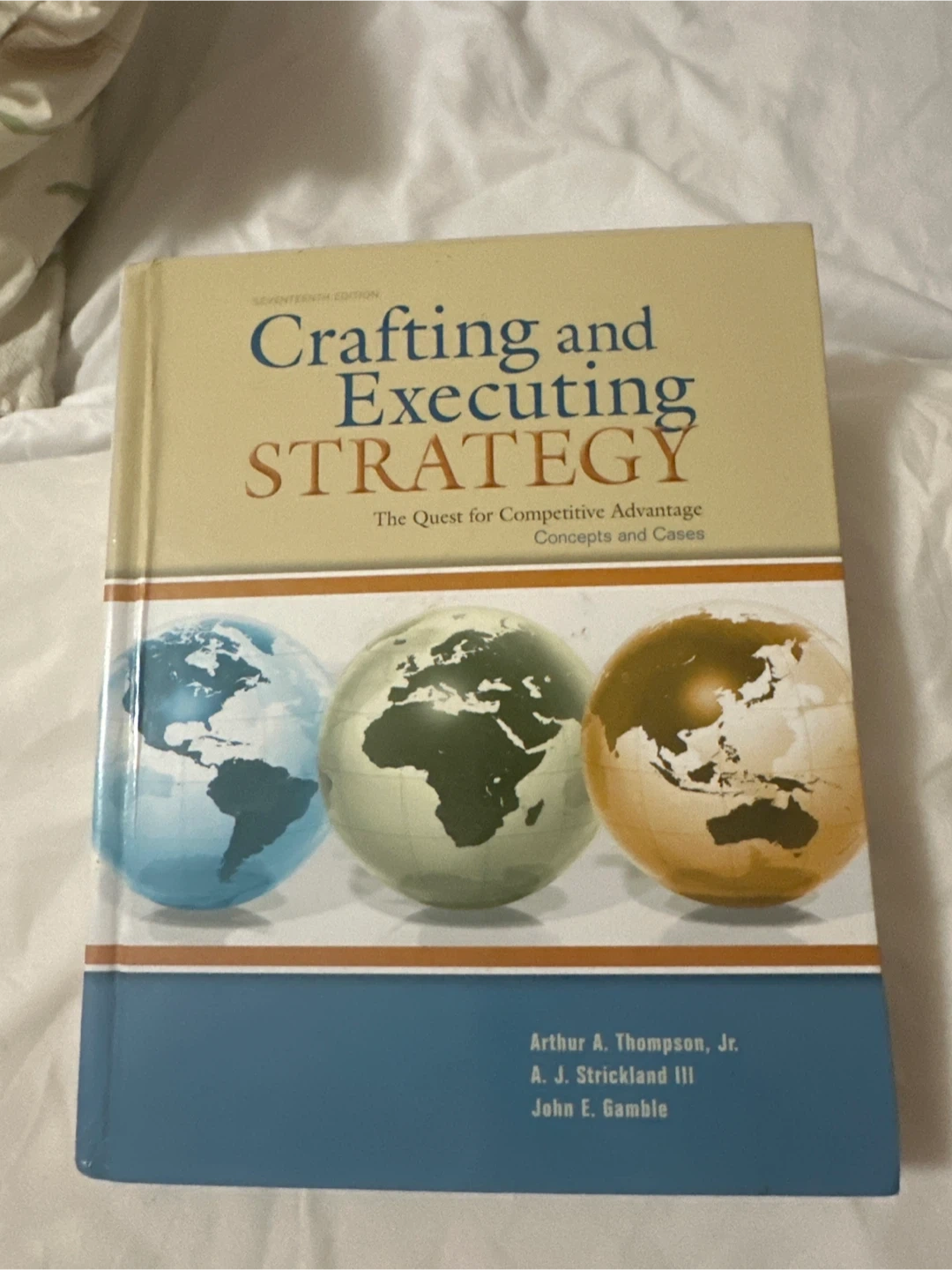 Selling a copy of "Crafting and Executing Strategy: The Quest for Competitive Advantage Concepts and Cases, Seventeenth Edition" by Arthur A. Thompson, Jr., A. J. Strickland III, and John E. Gamble. It's a great resource for business strategy simulations and higher education!