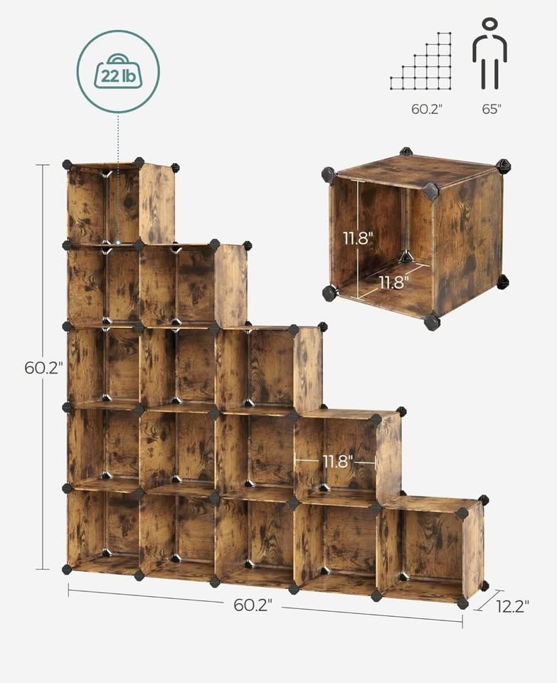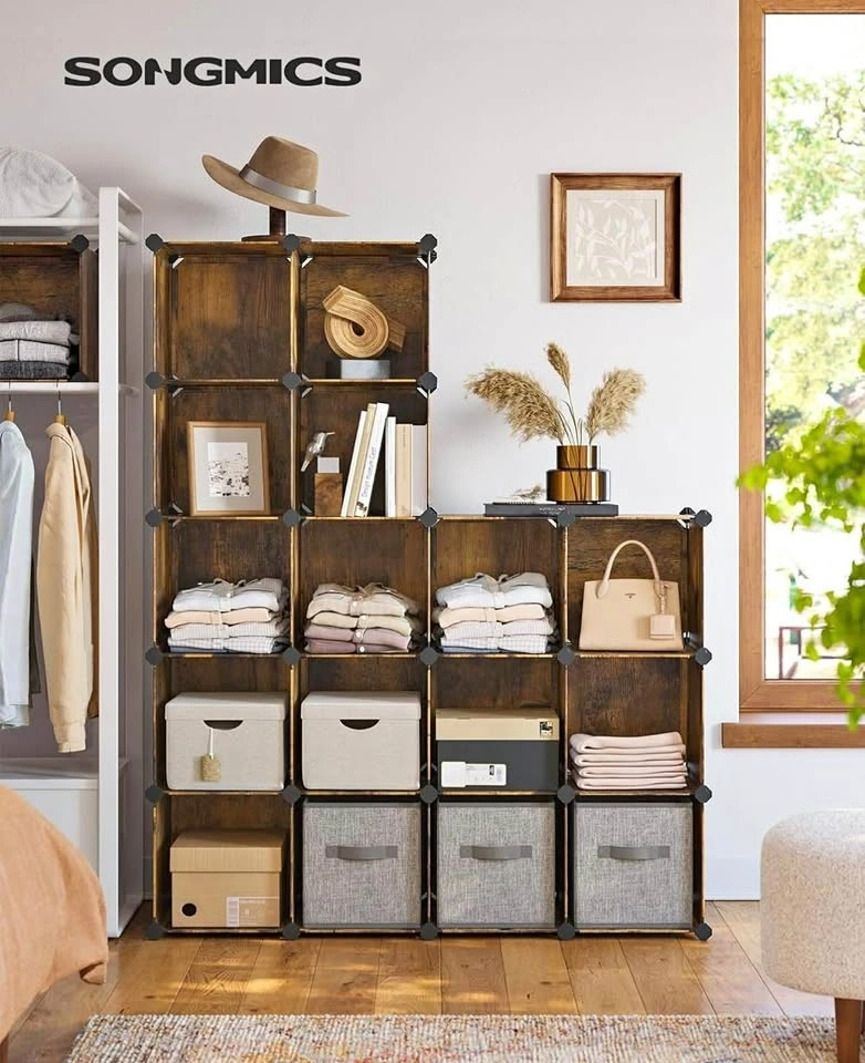 Upgrade your storage instantly with this stylish and versatile SONGMICS 16-cube organizer in a beautiful rustic brown finish. Perfect for closets, bedrooms, playrooms, offices, or entryways.