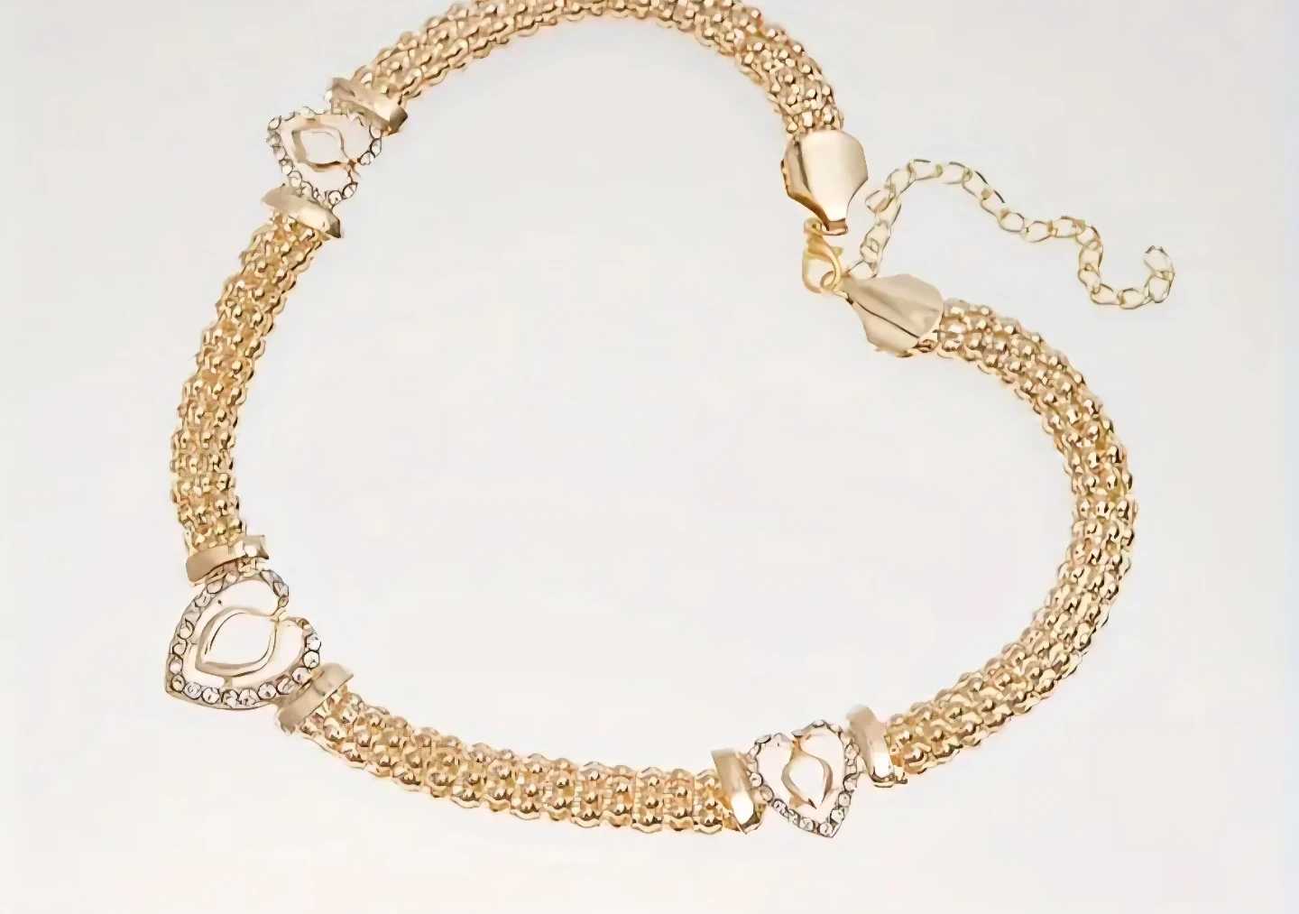 Gold Tone Heart Jewelry Set - Necklace, Bracelet, Ring, Earrings