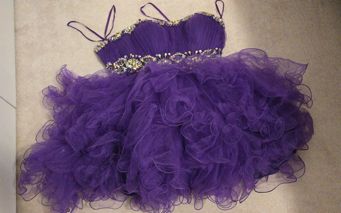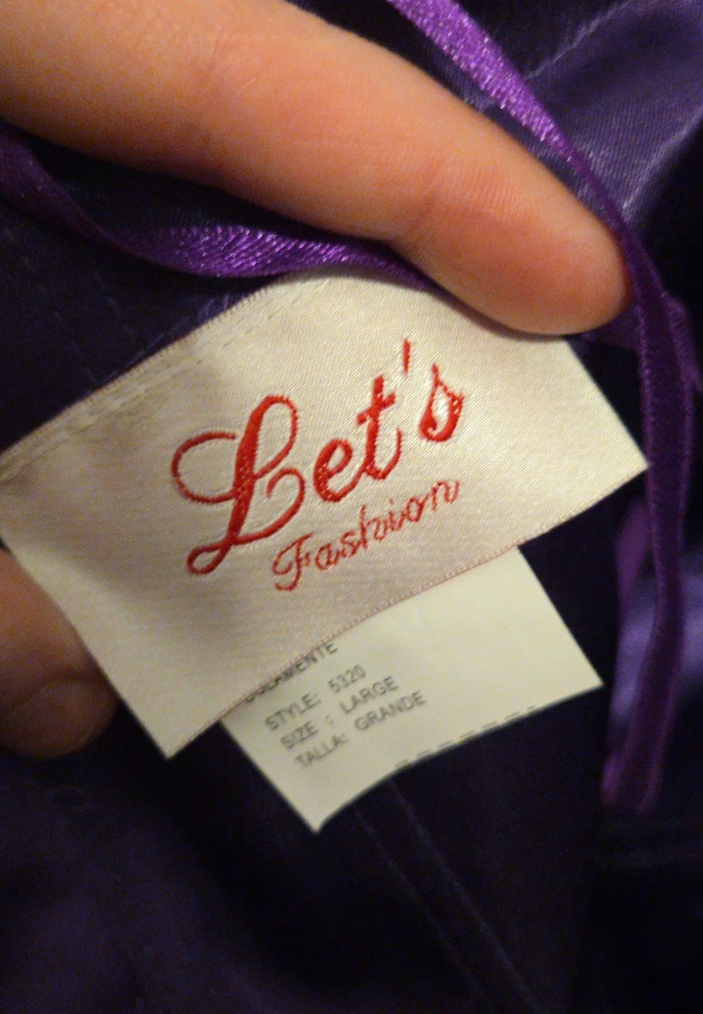 Selling a beautiful purple dress from Let's Fashion! It's a size large and made of 100% polyester. The style number is 5320. Perfect for prom or evenings!