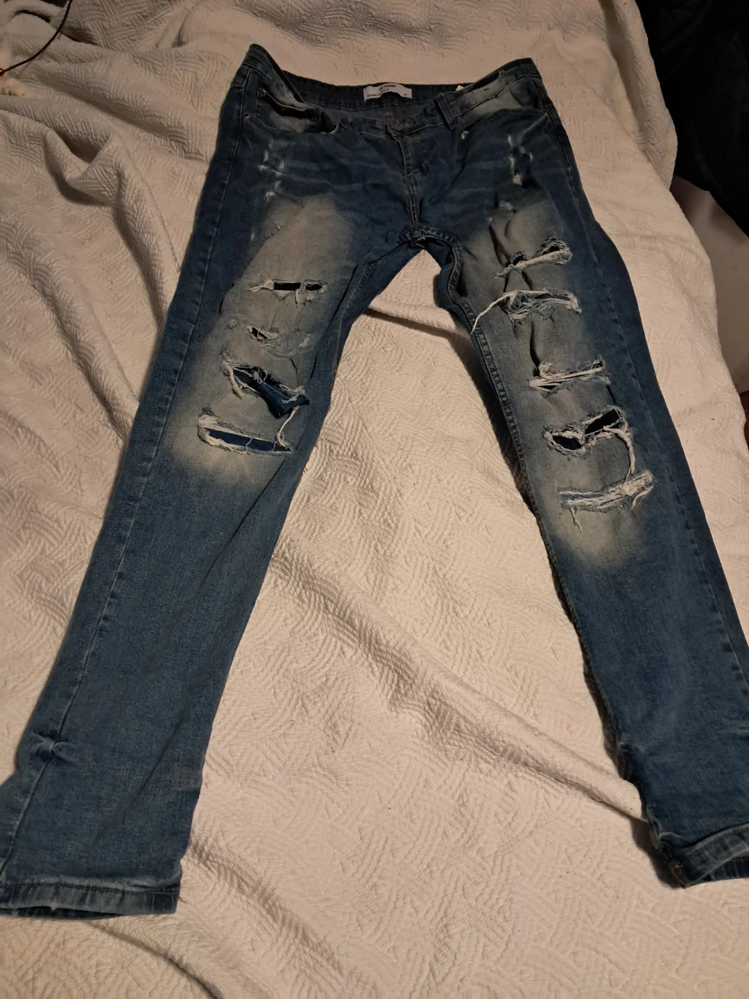 Selling a pair of UH Denim slim fit in size 36. They have a distressed look with several rips for the well known look of ripped jeans.