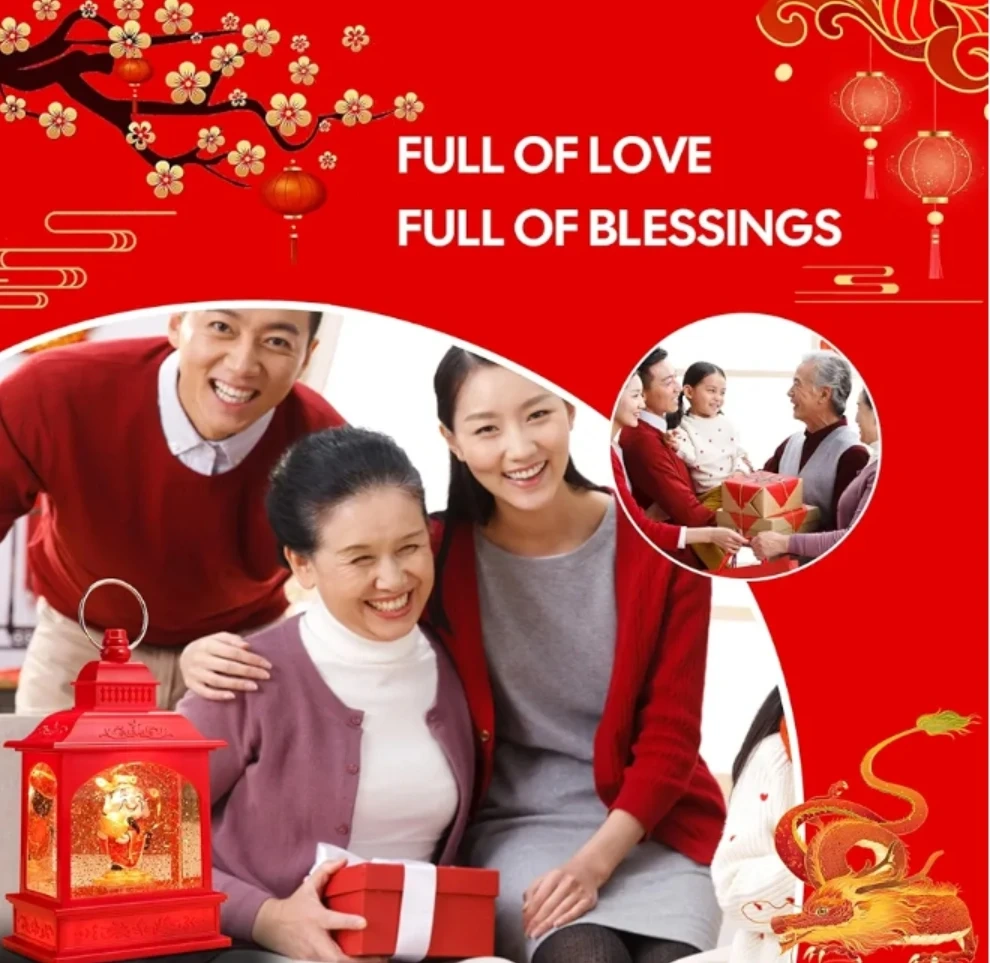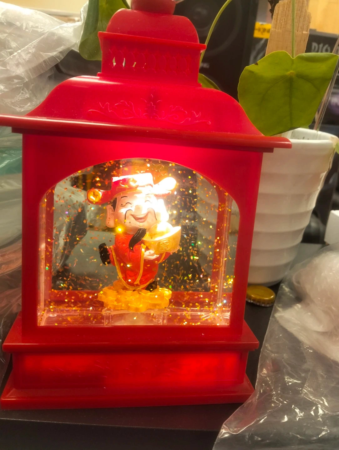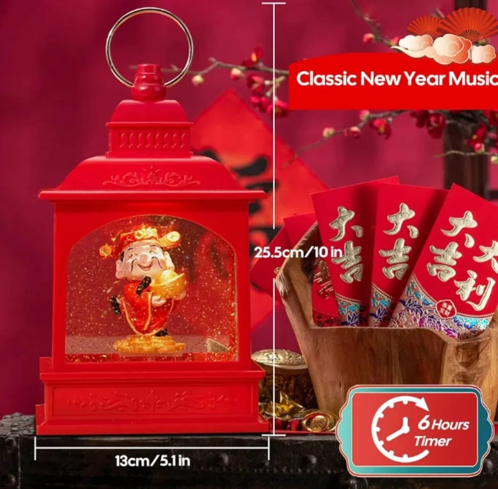 Add some festive cheer with this Cai Shen Snow Globe Lantern! It's a super cute decoration for the New Year with a musical function. It plays 3 classic New Year songs. It can be operated by USB cable, which is included. It also has a timer for 6 hours. It's designed with a spring festival theme and is easy to carry
