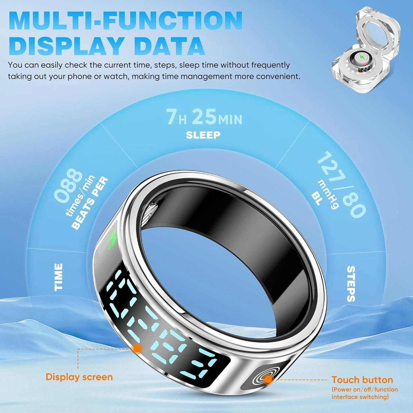 Smart Ring with Display, Health Tracker, Bluetooth, Size 12