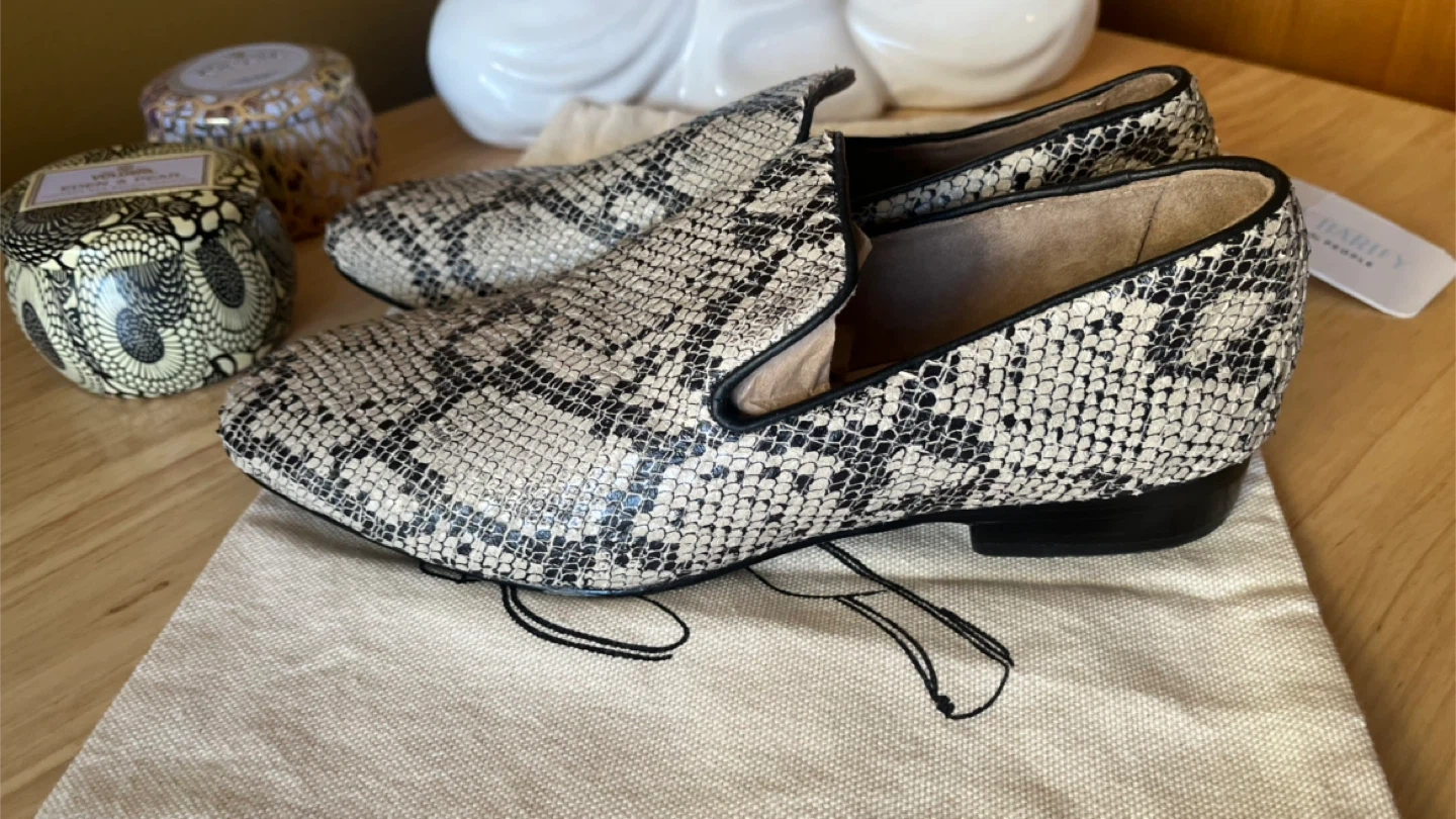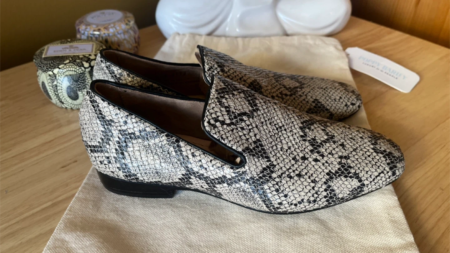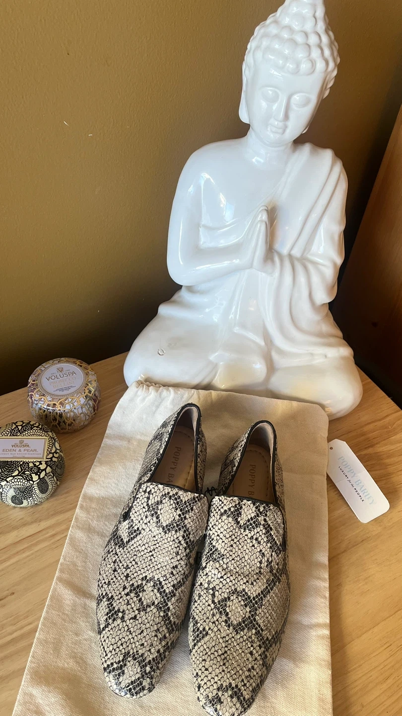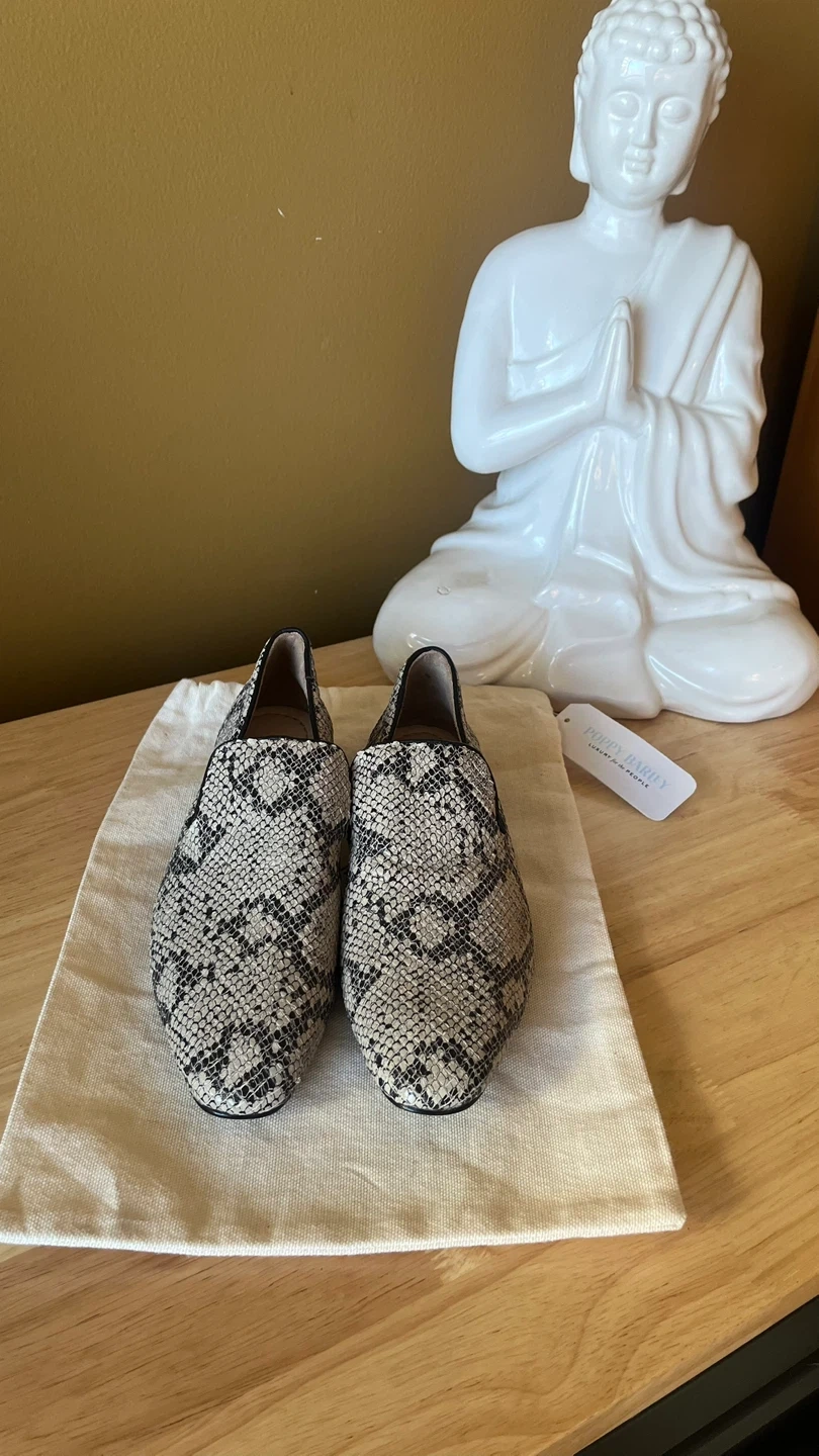 These Poppy Barley loafers are in a snakeskin print and are a size 5. They are in great condition and come with the original dust bag!