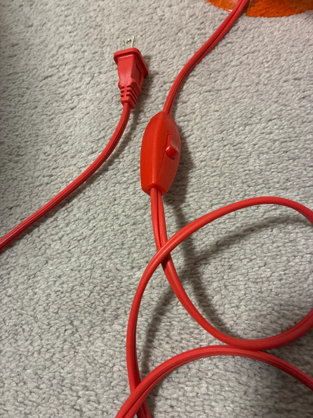This is a super cute mushroom-style table lamp. It features a white shade and an orange base. It would be perfect for a bedside table or desk!