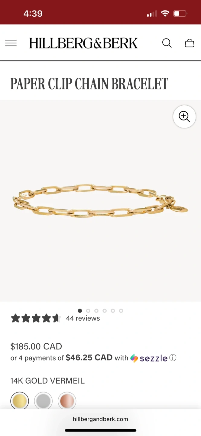 Selling a Hillberg & Berk paper clip chain bracelet in gold vermeil. It's a beautiful piece that originally retailed for $185 CAD. Perfect for adding a touch of elegance to any outfit!