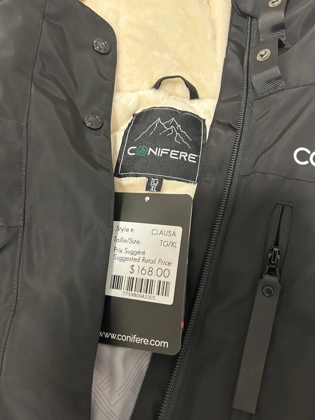 Here's a Conifere winter parka in excellent condition! It's a size XL and features a cozy faux fur lining and hood trim. The style number is CLAUSA, and it originally retailed for $168.00