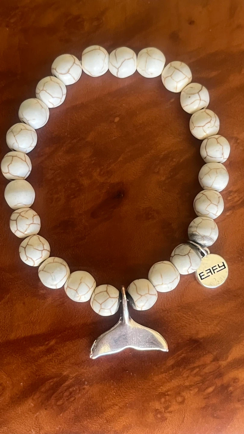 Here's a charming EFFY bracelet featuring white crackle beads and a silver-tone whale tail charm! It's in great condition and ready to add a touch of seaside style to your look