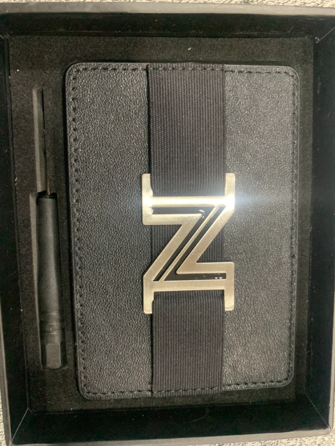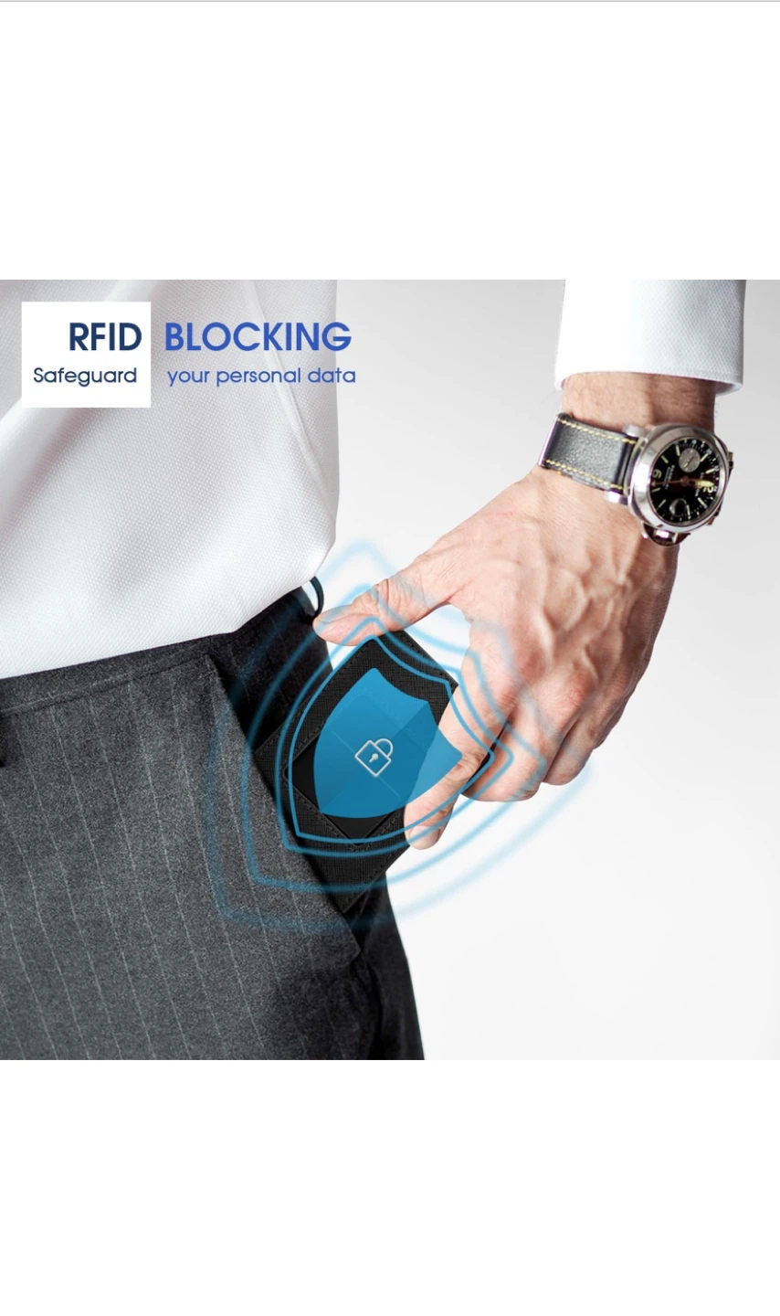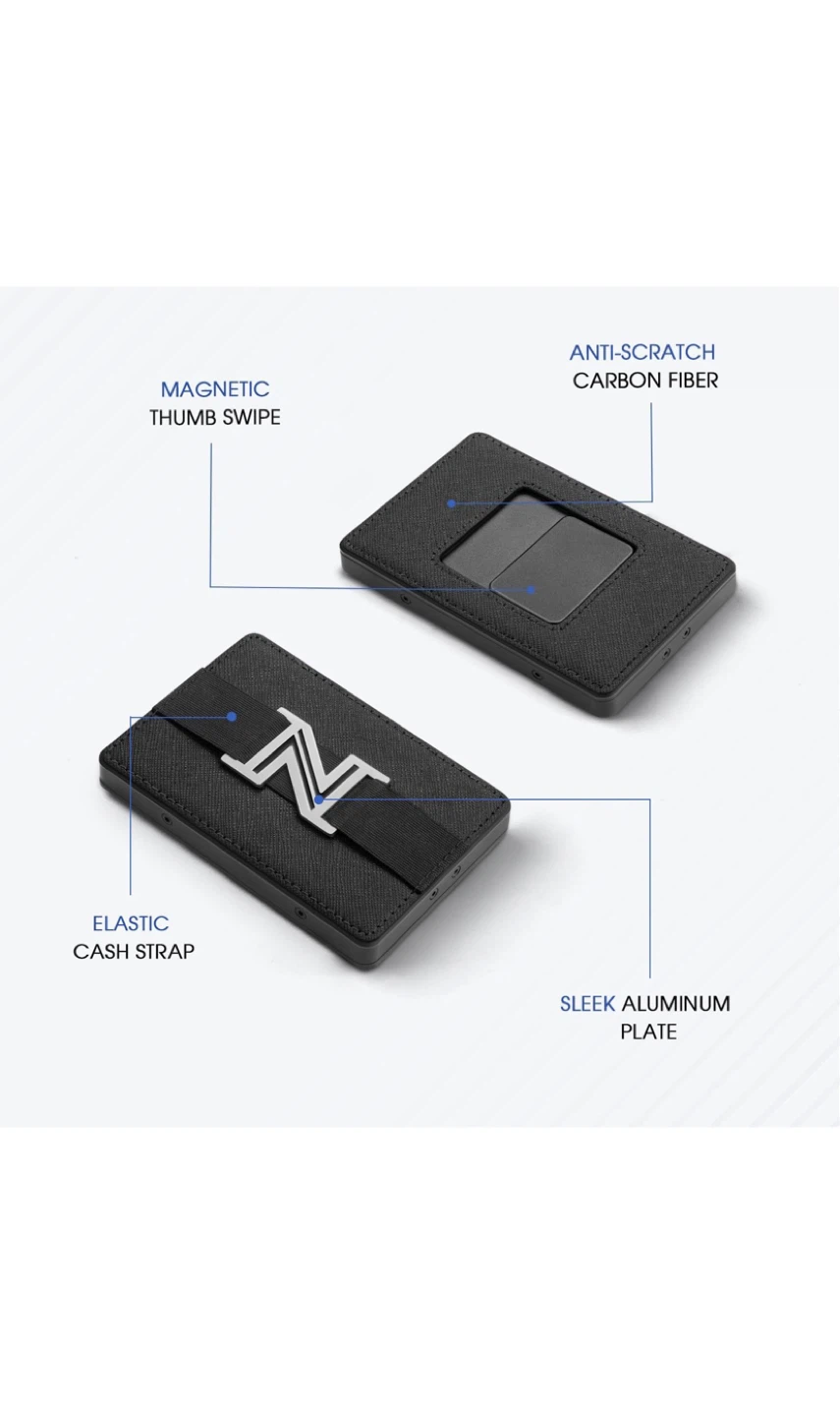 This Zavelio card holder wallet is in great condition and comes with its original box! It features a card slider that can hold up to 6-8 cards and a stainless steel money clip for bills. It also has RFID blocking to safeguard your personal data