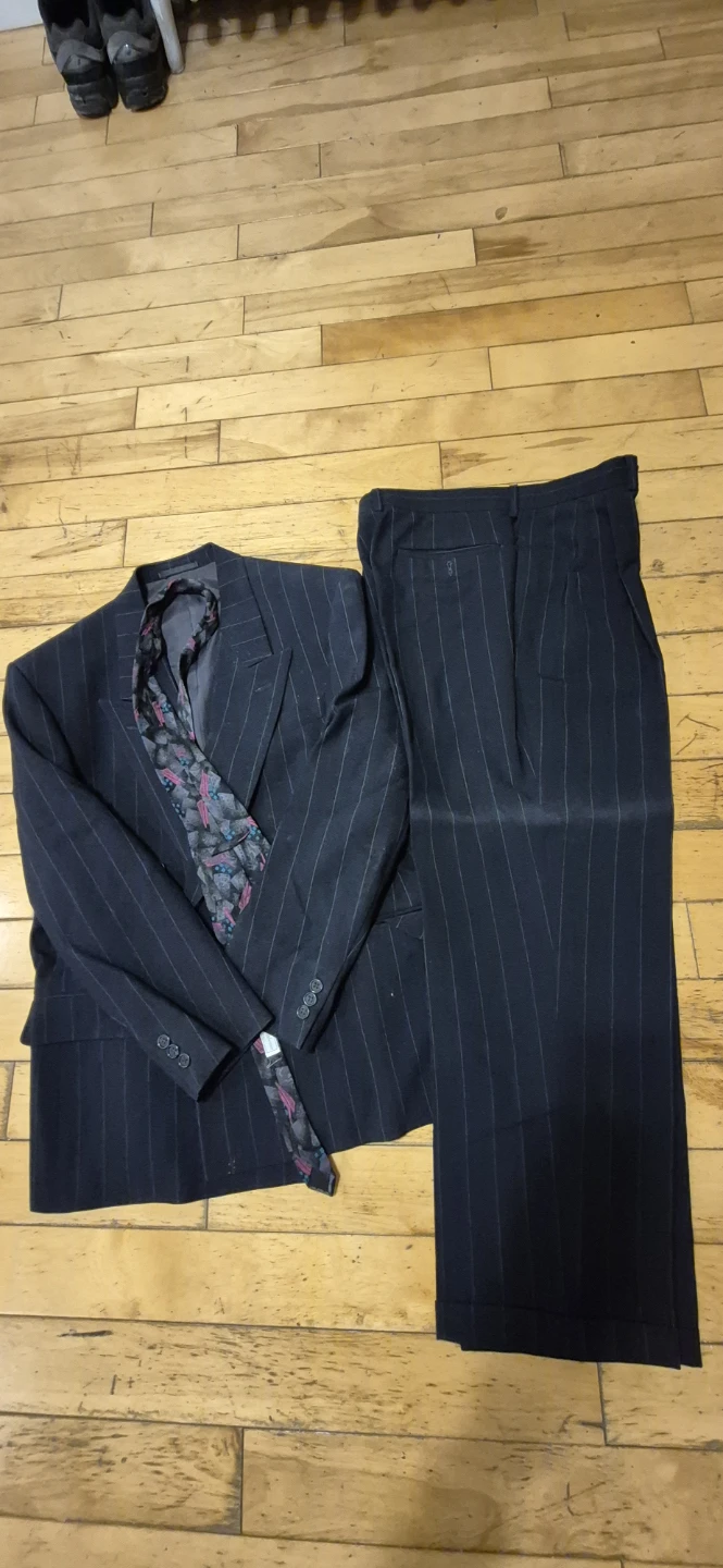 Selling a Europa pinstripe suit! It's in great condition and ready for a new owner. The suit has a classic pinstripe pattern, perfect for a professional or formal occasion.