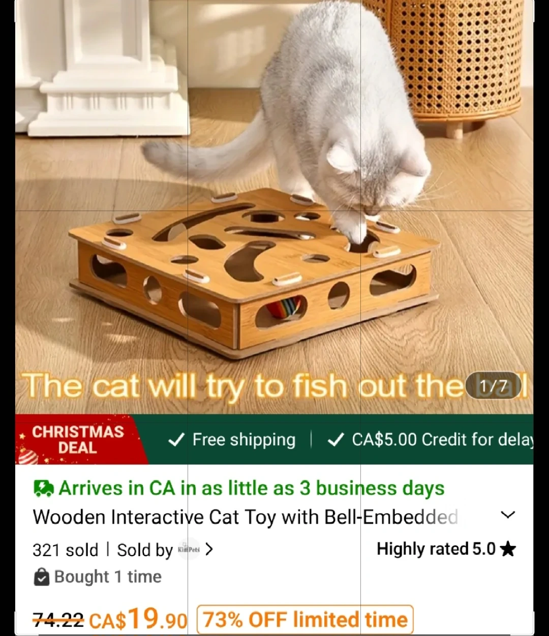 Wooden Interactive Cat Toy with Bell
