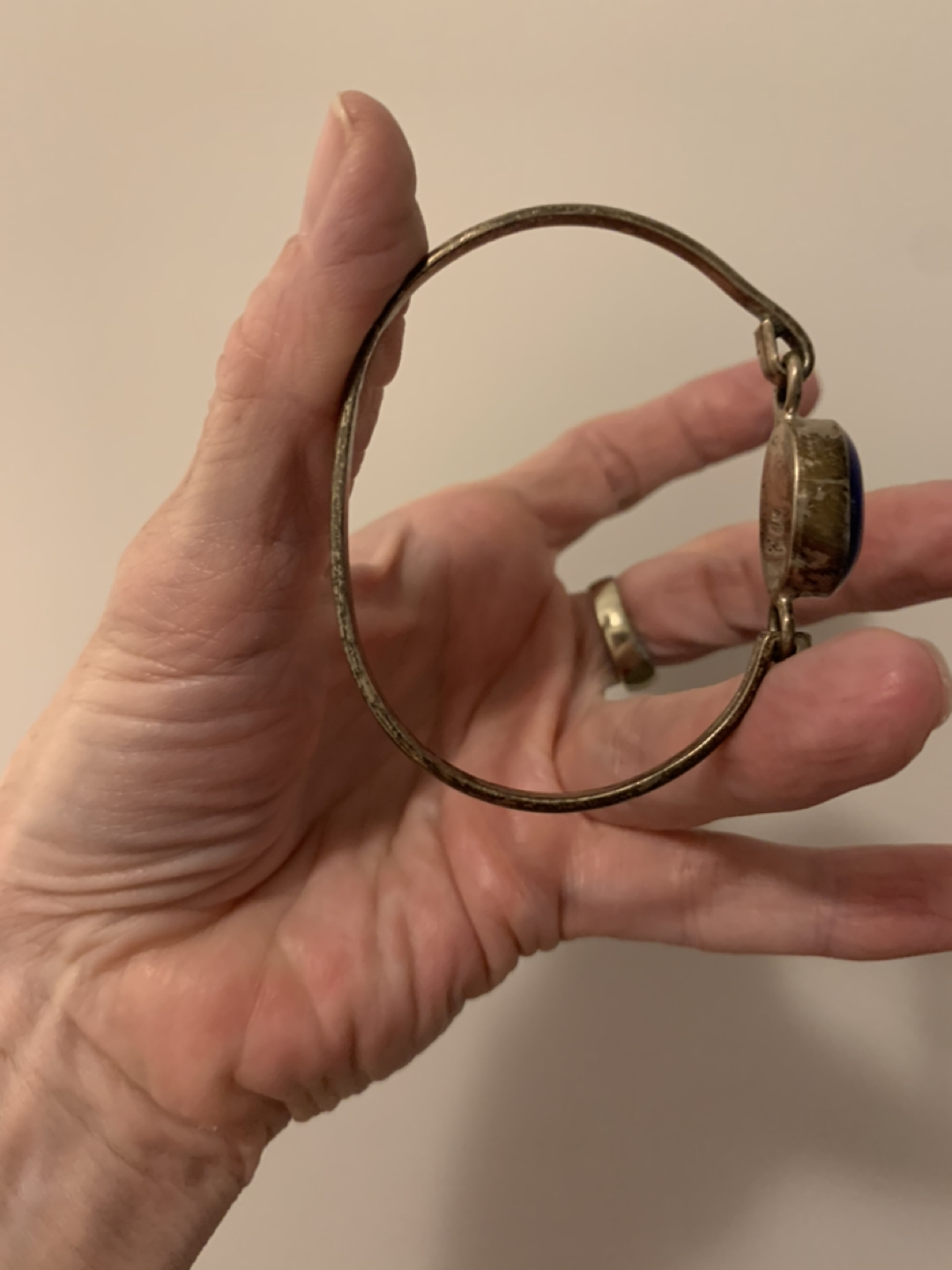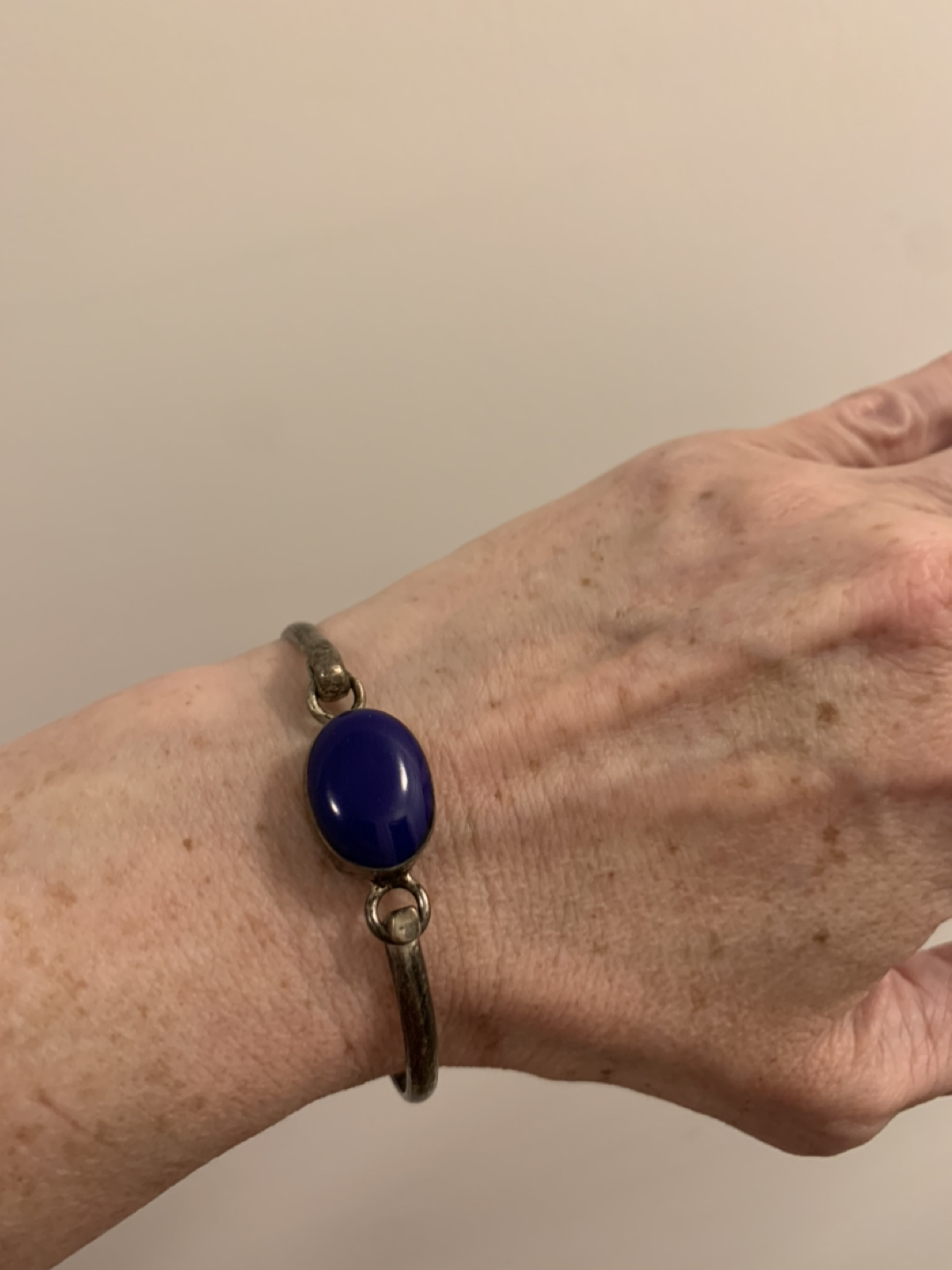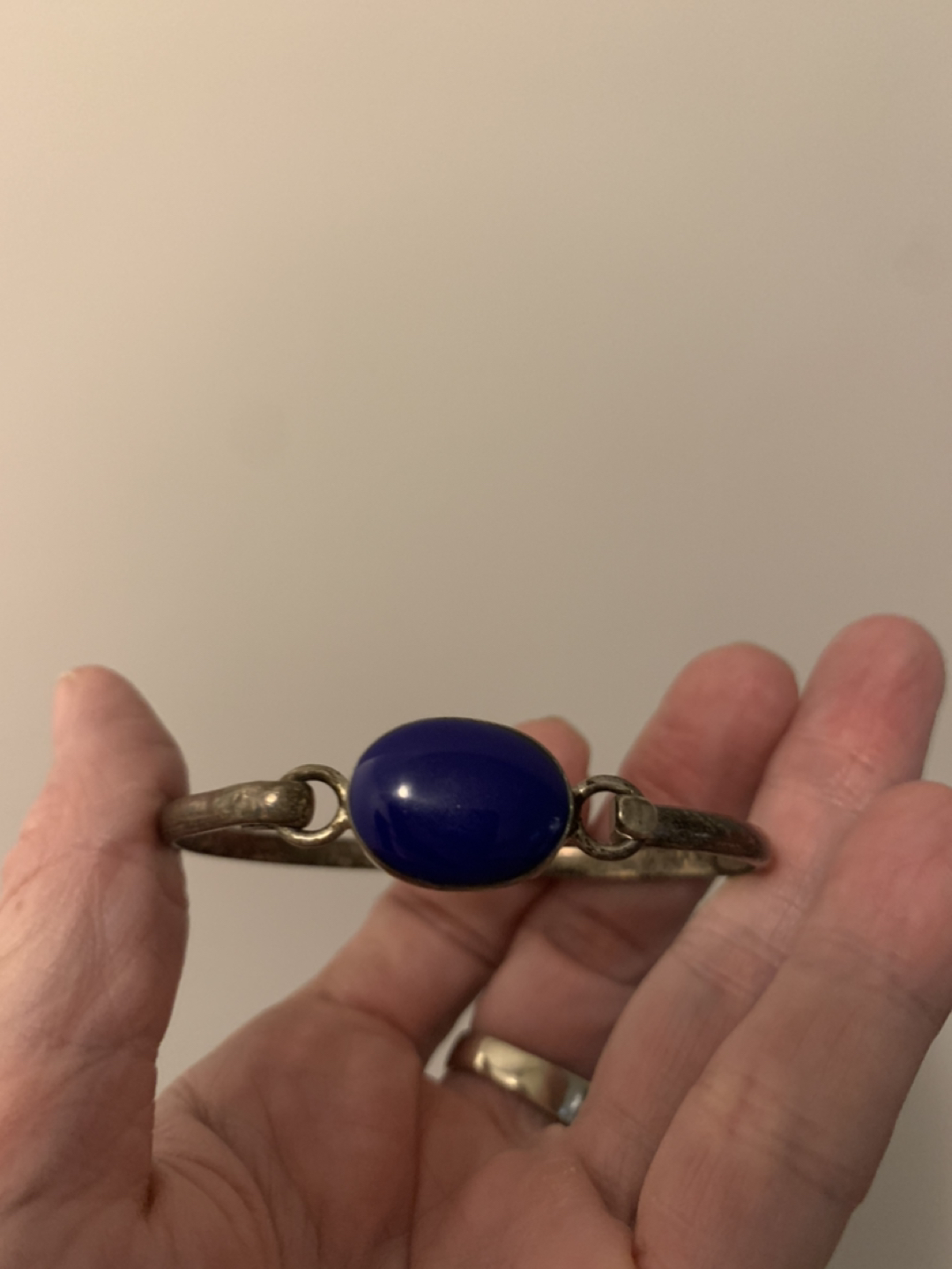 Bracelet with blue stone. Unsure of materials but it’s pretty. Pick up in Roncesvalles. No holds please. Same day/next day pick up preferred.