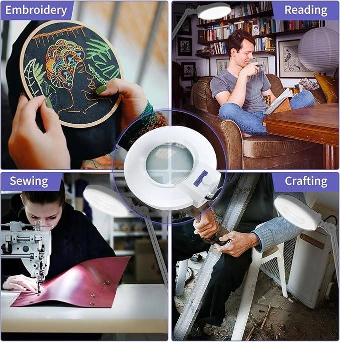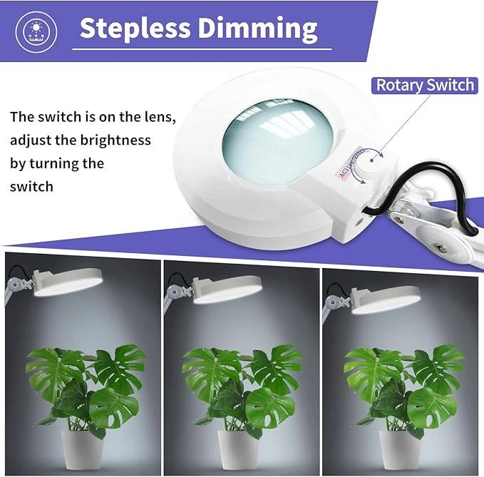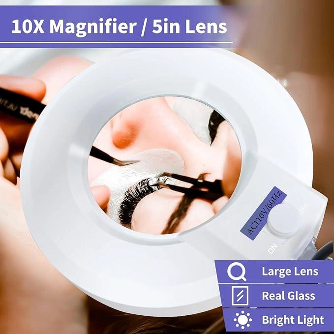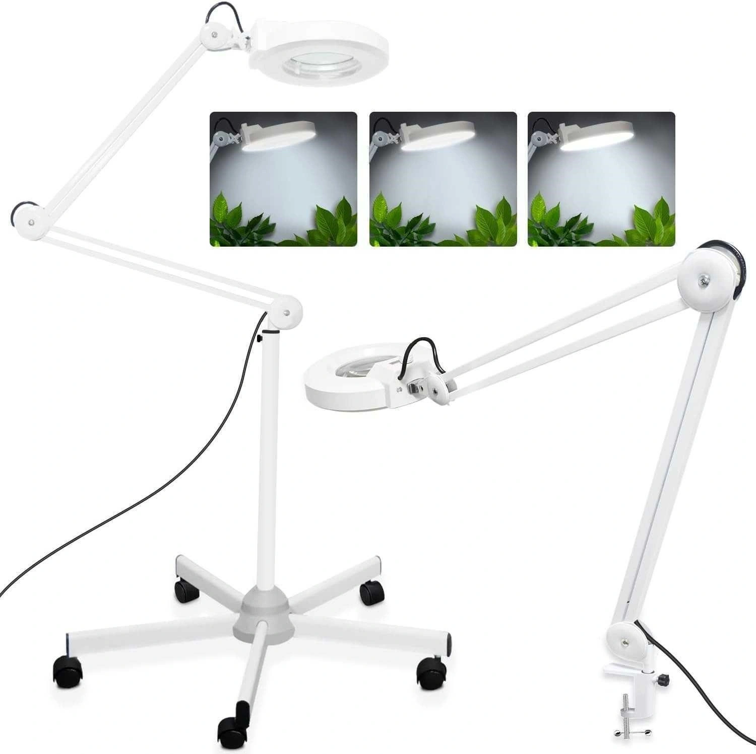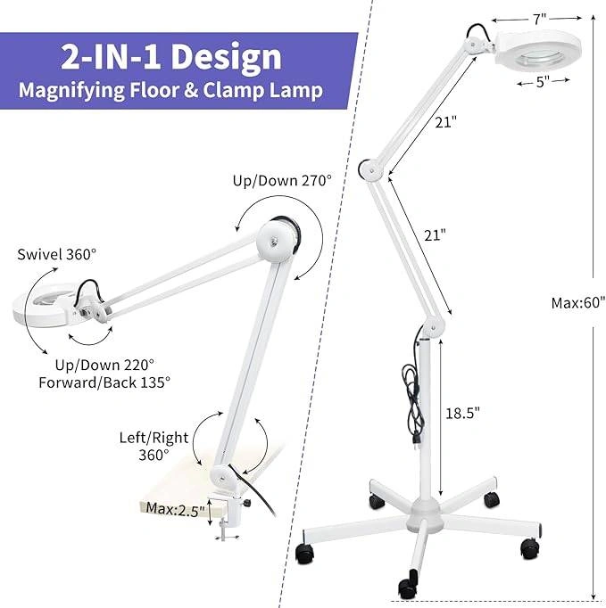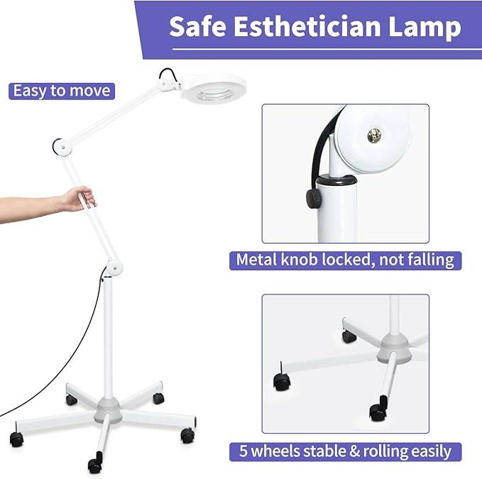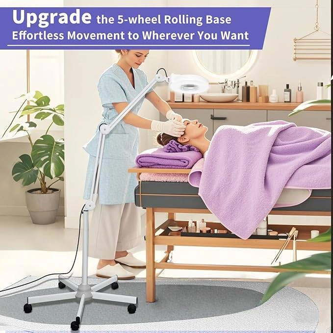 Description: LudoPam 10X Magnifying Glass with Light and Stand, 2-in-1 Floor lamp with 5 Wheels Rolling Base,2,400 Lumens Stepless Dimmable LED Lighted Magnifier for Facials Esthetician, Lash Extension, Crafts