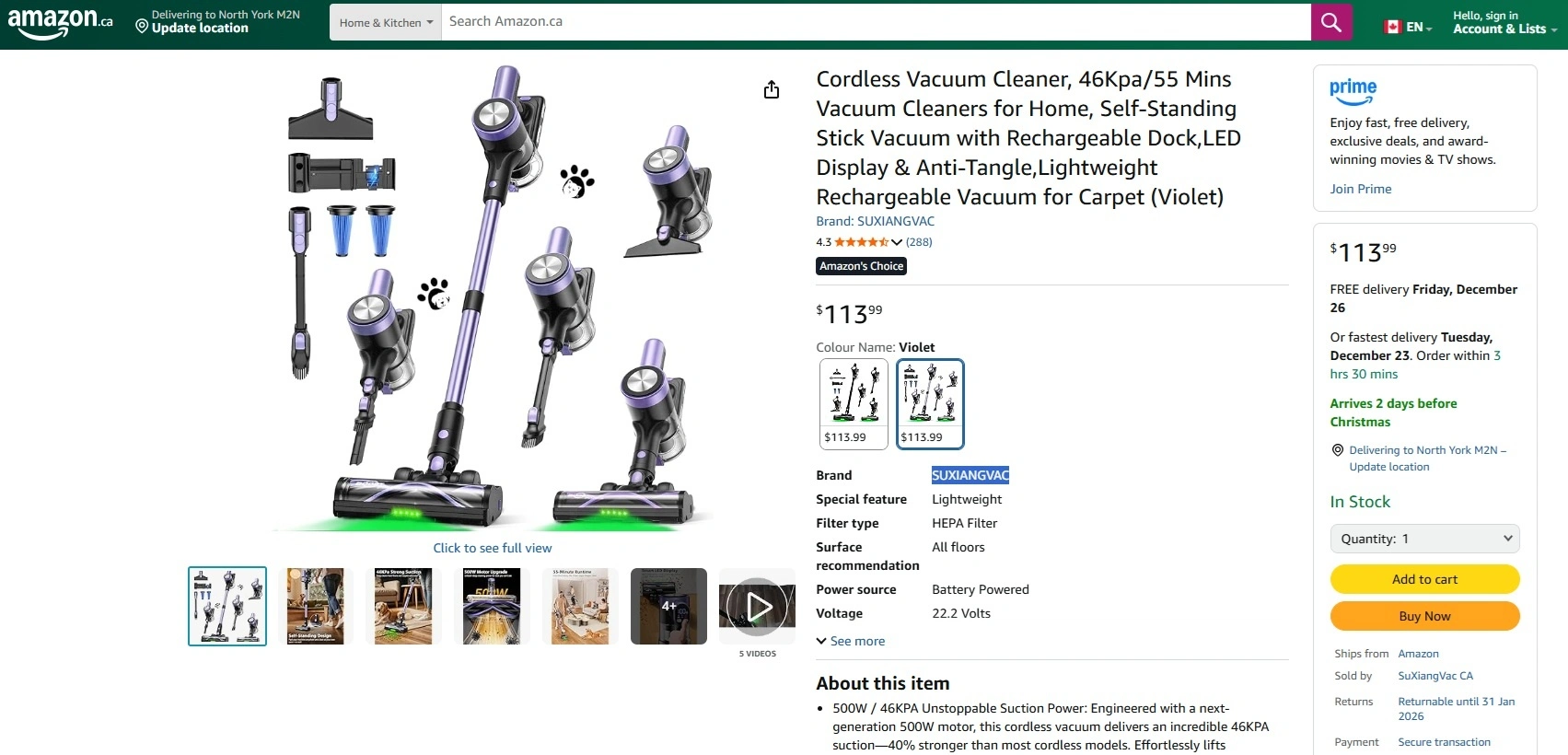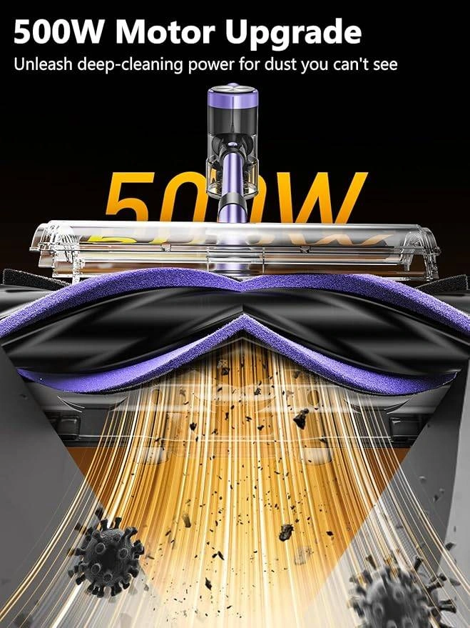 Description: Cordless Vacuum Cleaner, 46Kpa/55 Mins Vacuum Cleaners for Home, Self-Standing Stick Vacuum with Rechargeable Dock, LED Display & Anti-Tangle, Lightweight Rechargeable Vacuum for Carpet (Violet)