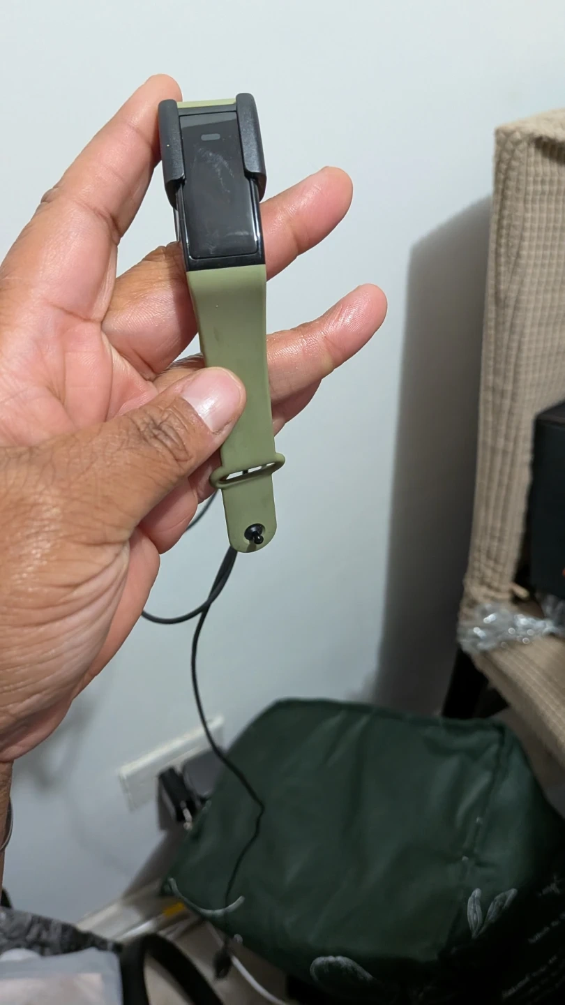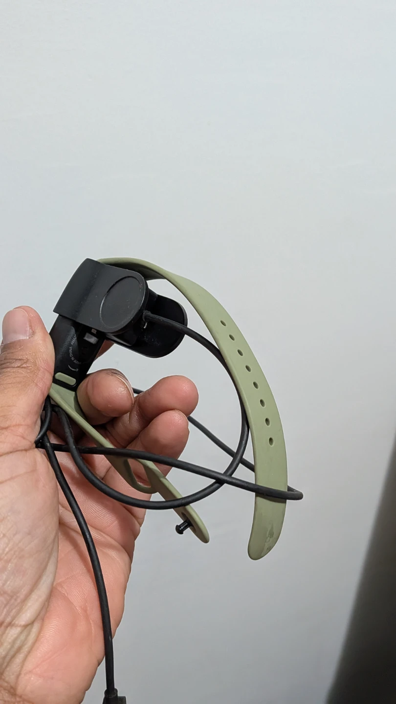 Selling a Fitbit charger that comes with an olive-colored band. It's in good condition and ready to keep your Fitbit powered up! Includes the charger and band.