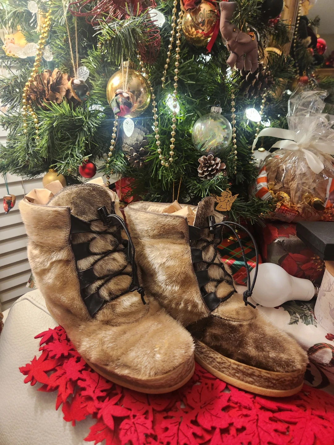 These boots are made in France and feature a unique seal and sherling and lace up design! Elastomere, french brand They're in GREAT vintage condition. Super warm and ready for a new owner. Size 11/11.5 womans and 10/10.5 mens size.