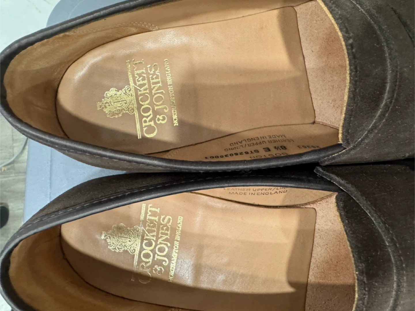 Selling a pair of Crockett & Jones loafers in a dark brown suede.