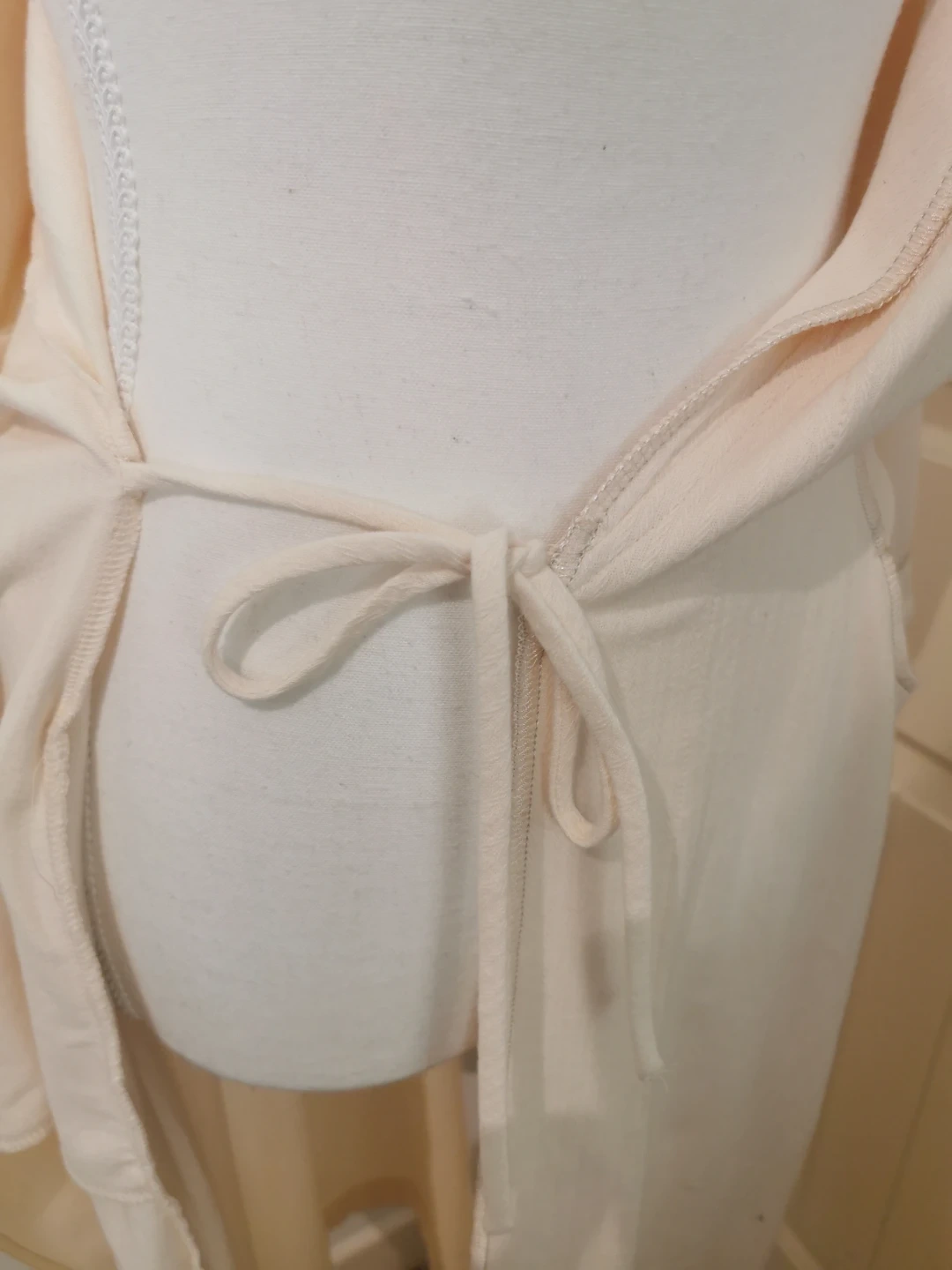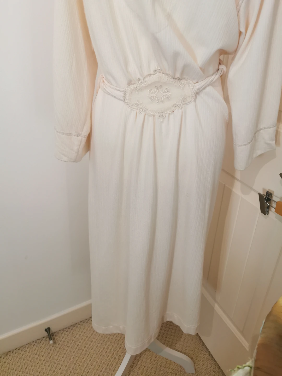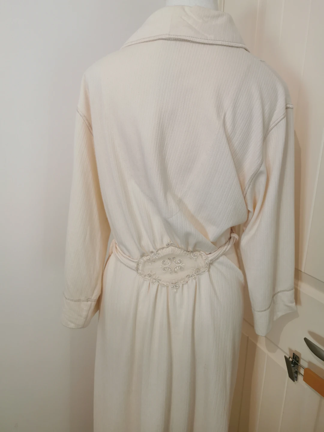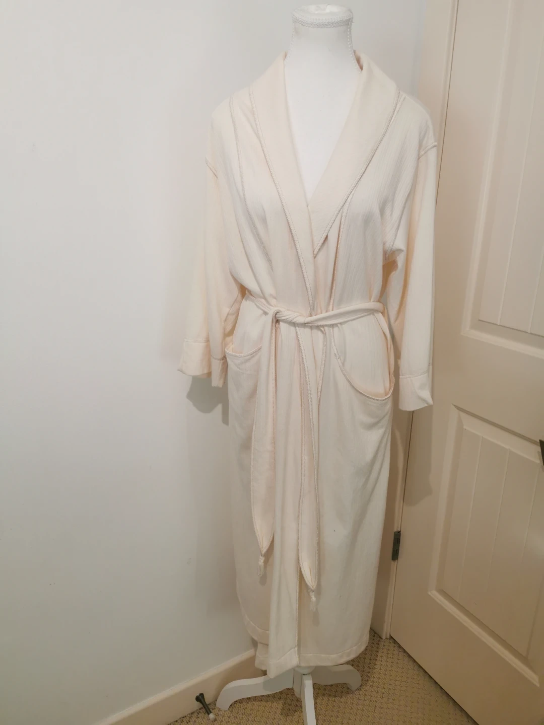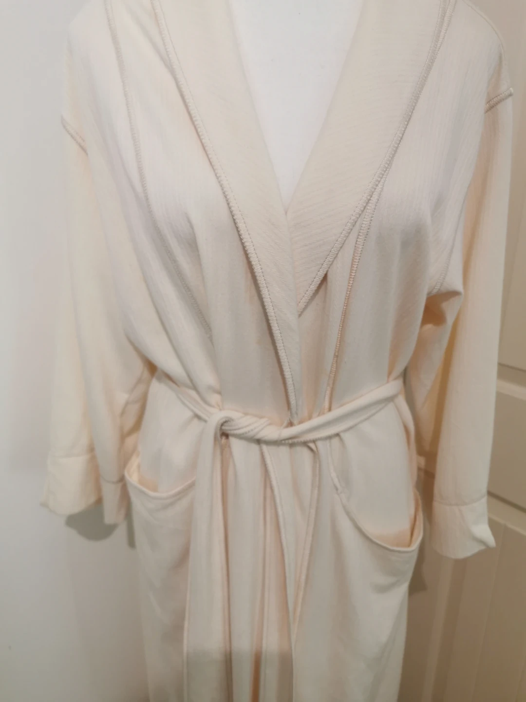Selling a cream-coloured robe. It's in great condition and features a tie at the waist. Perfect for lounging around the house!