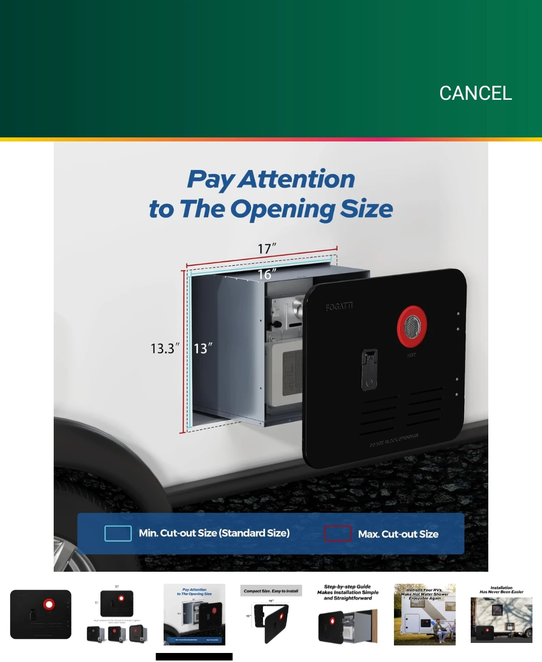 * Applicability: If you are replacing your Atwood 6 - gallon water heater with a FOGATTI RV water heater, this product should be installed.