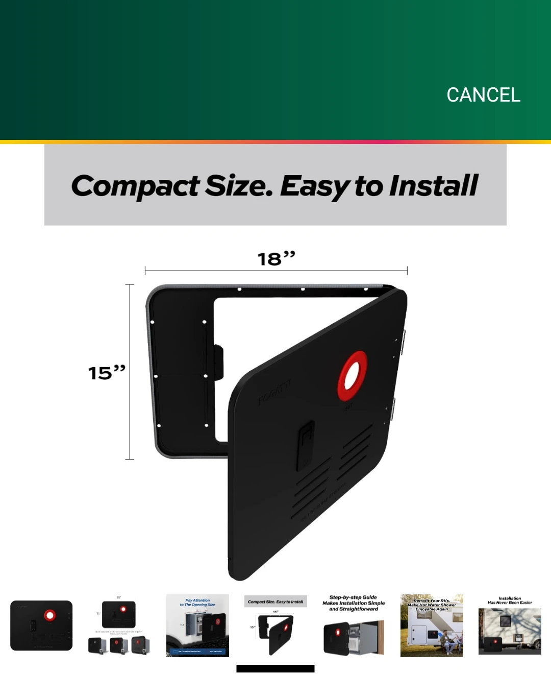 * Basic Door Size: 15" x 18" (Excluding decorative frame). Black color and it's for FOGATTI RV water heater. Installation instructions are provided.