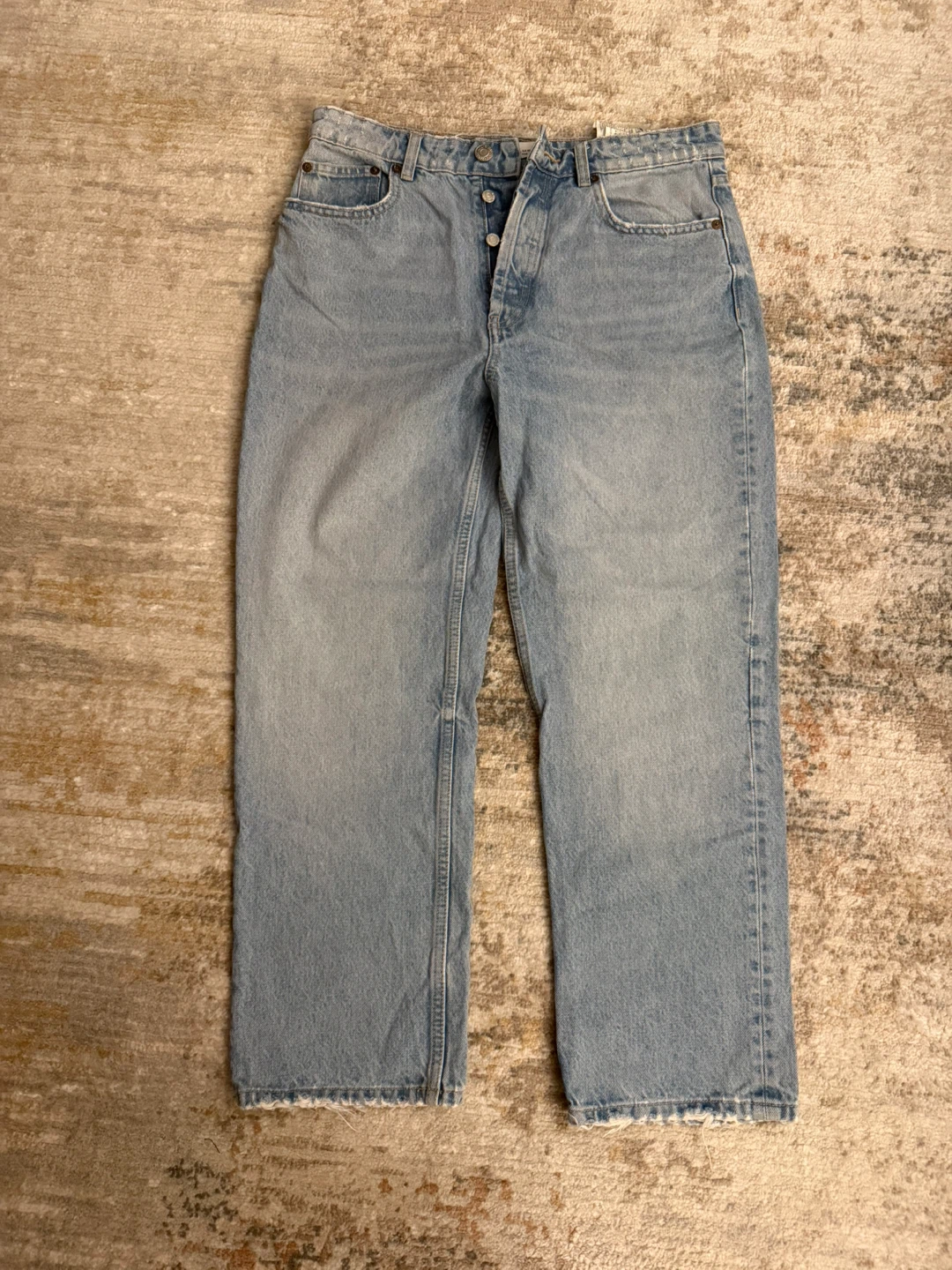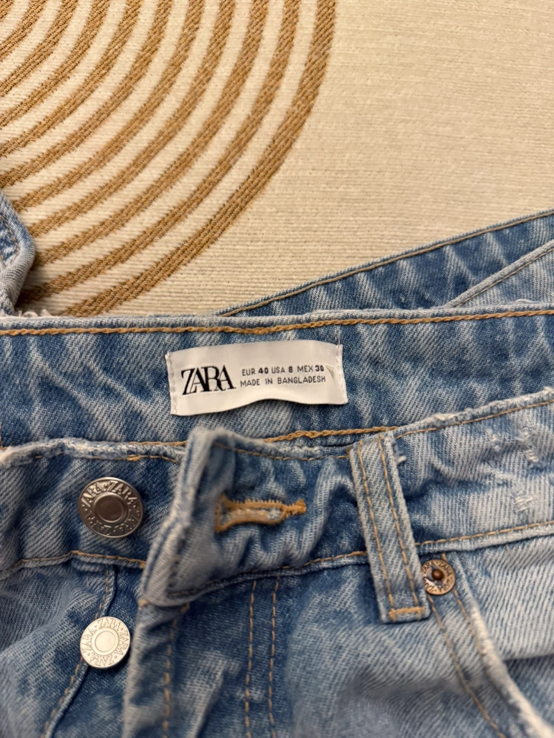Selling a pair of Zara denim jeans in a size 8. They are in great condition and ready for a new wardrobe! The jeans are made in Bangladesh.