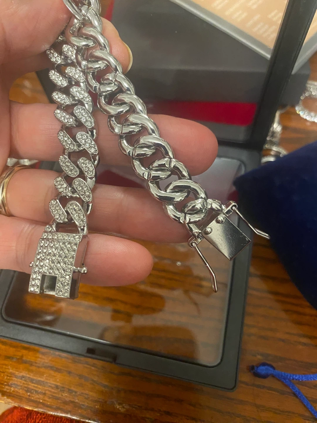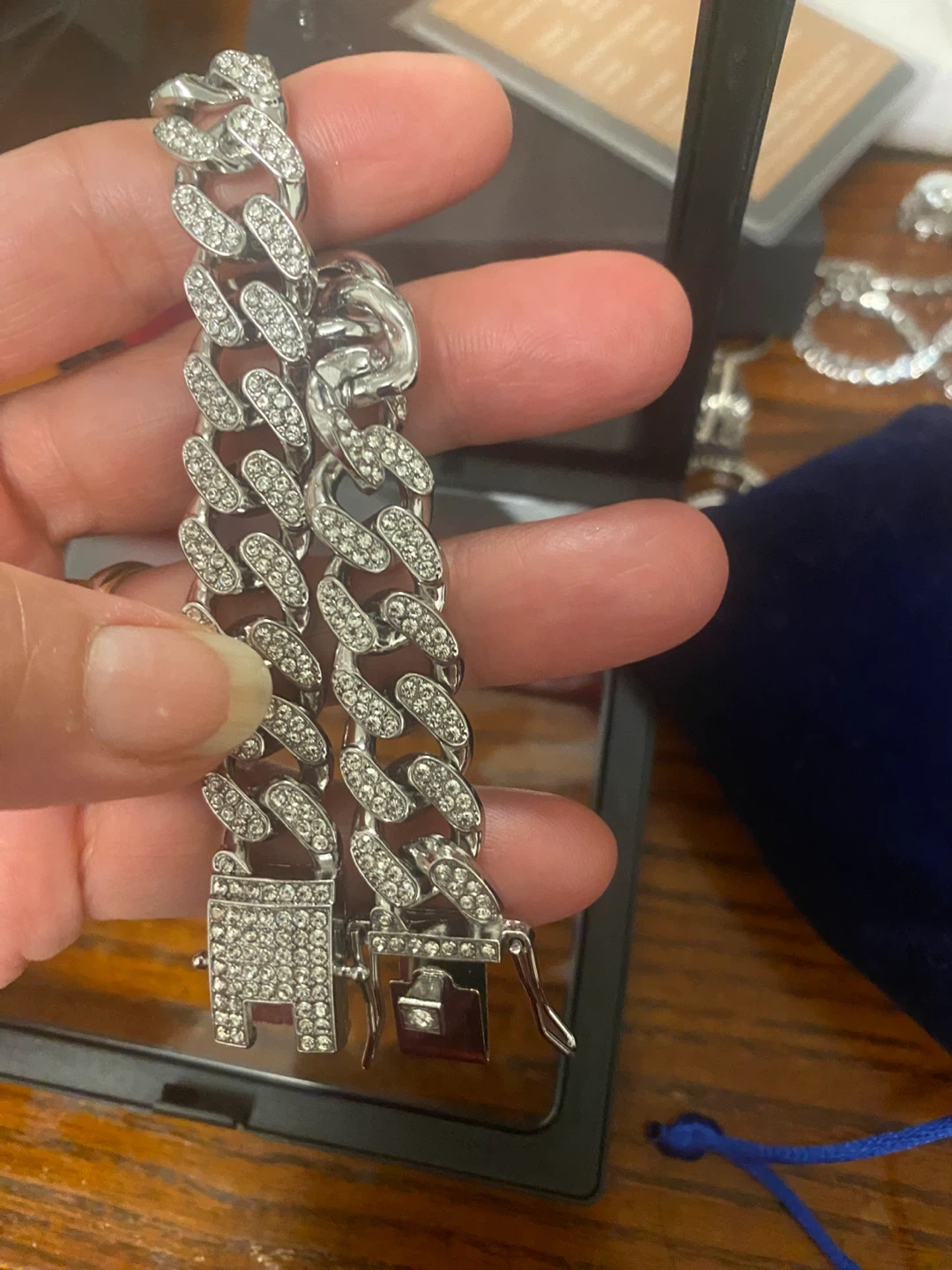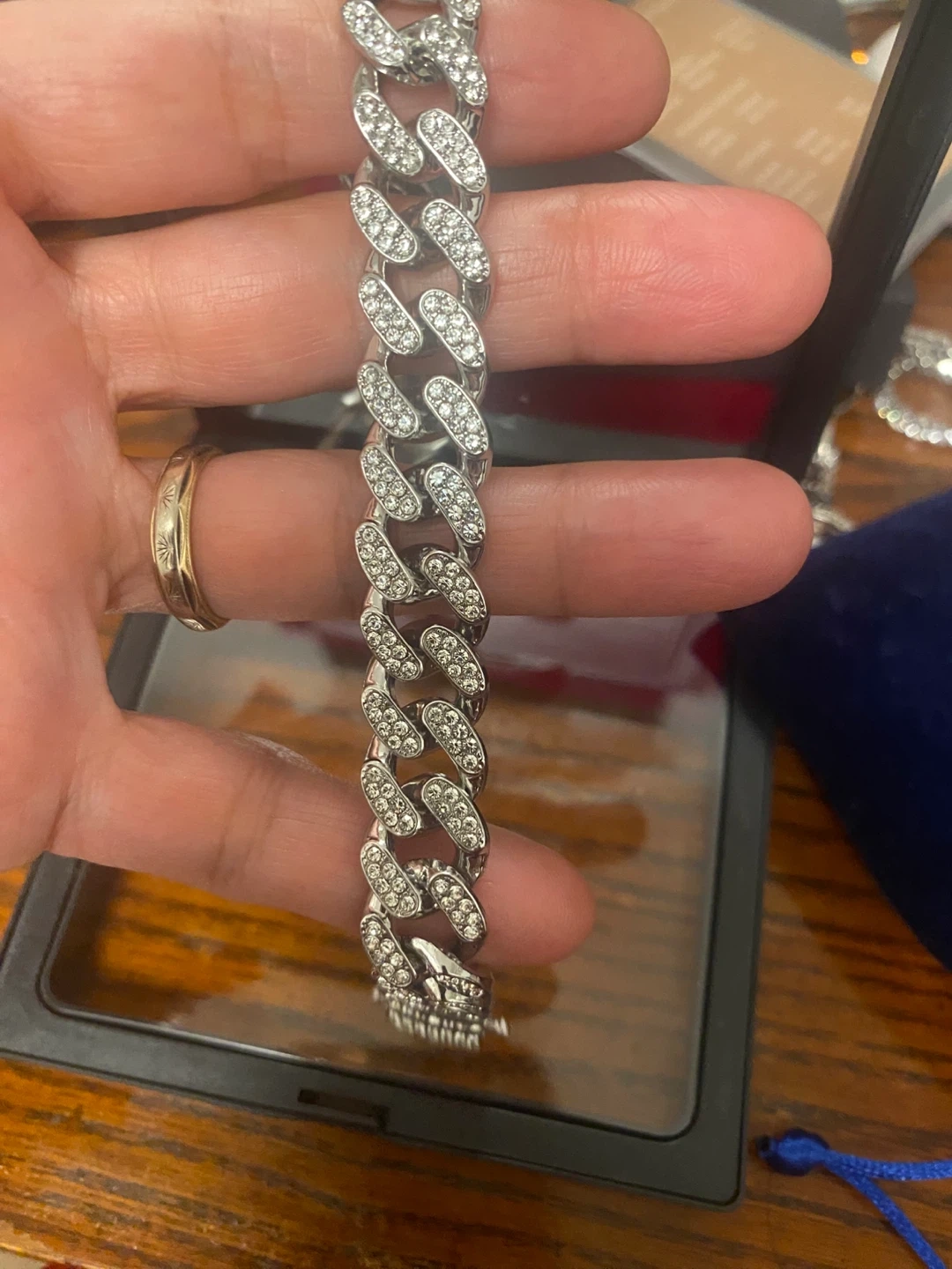 Selling a stylish Cuban link bracelet, adorned with cubic zirconia AAAD colours.This bracelet would be a new addition to your jewelry collection!