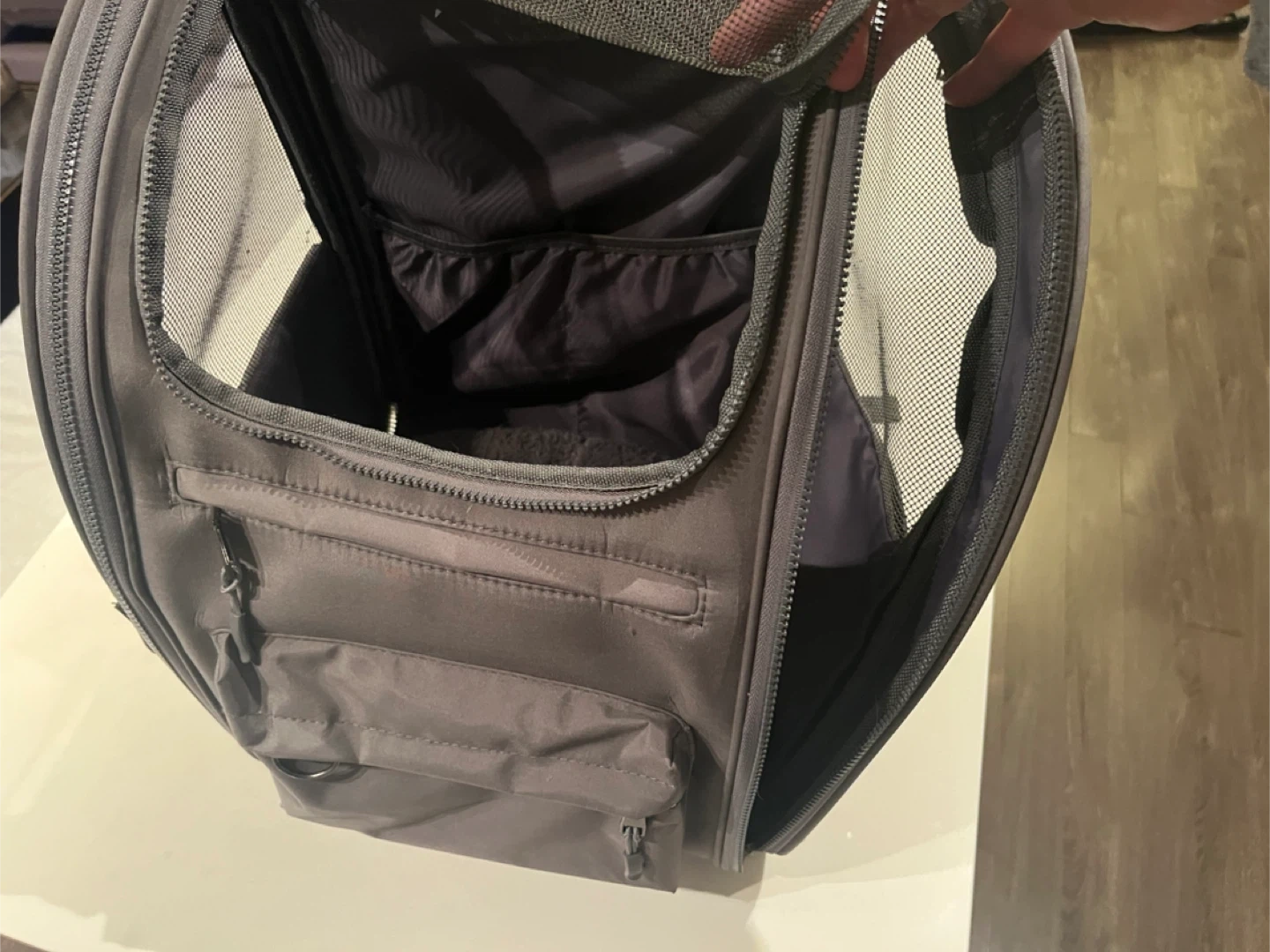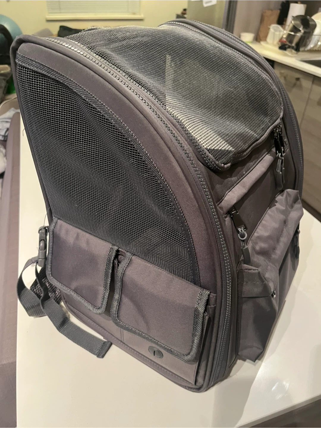 Selling a PetAmi pet carrier backpack in grey. It's in MINT condition and perfect for taking your furry friend on adventures! It's lightweight and portable, making it easy to carry your pet comfortably. Lots of great pockets for all your Treats!