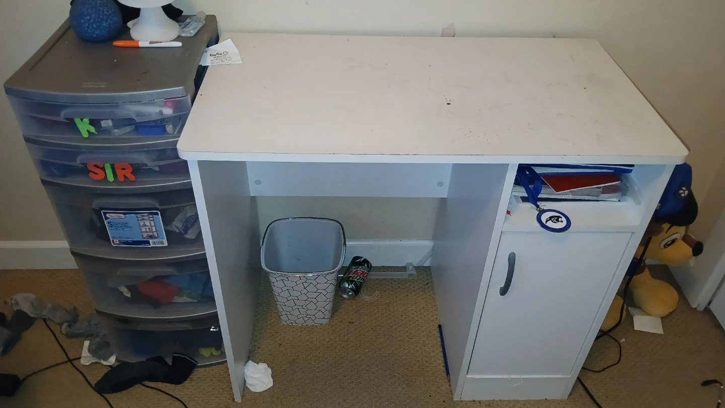 Selling a white kids desk. It's in used condition with some wear and tear on the top surface. Perfect for a child's bedroom or play area