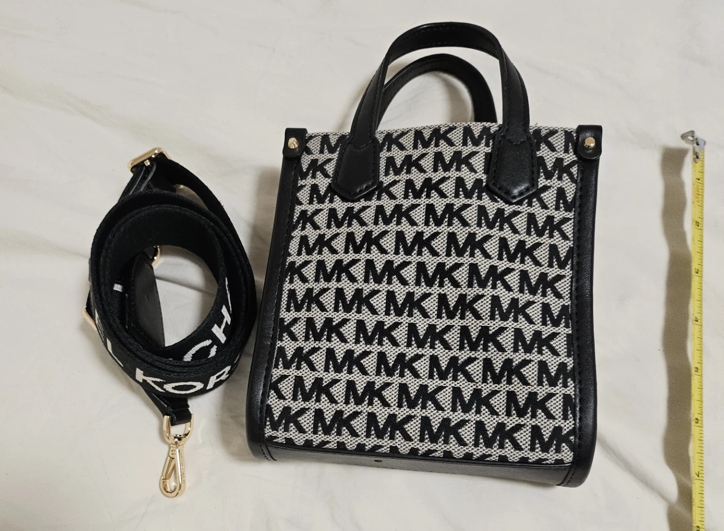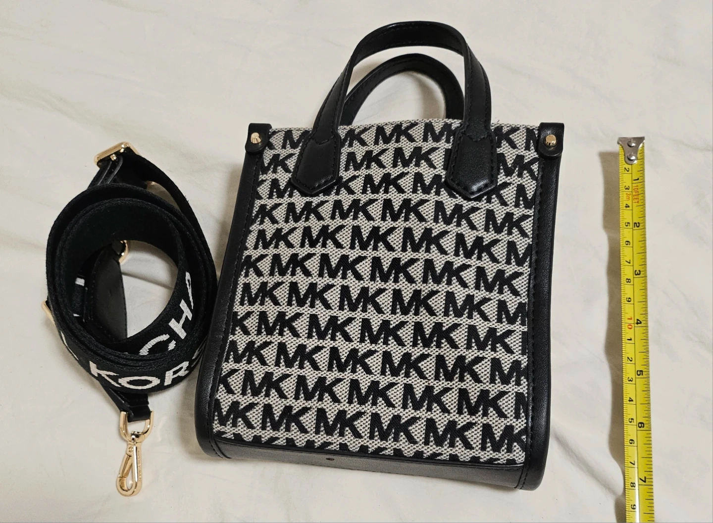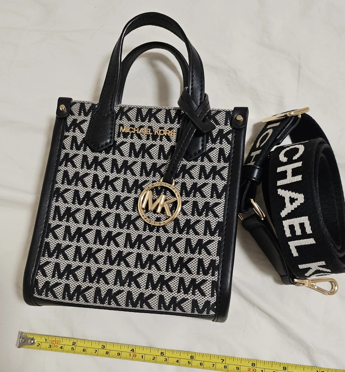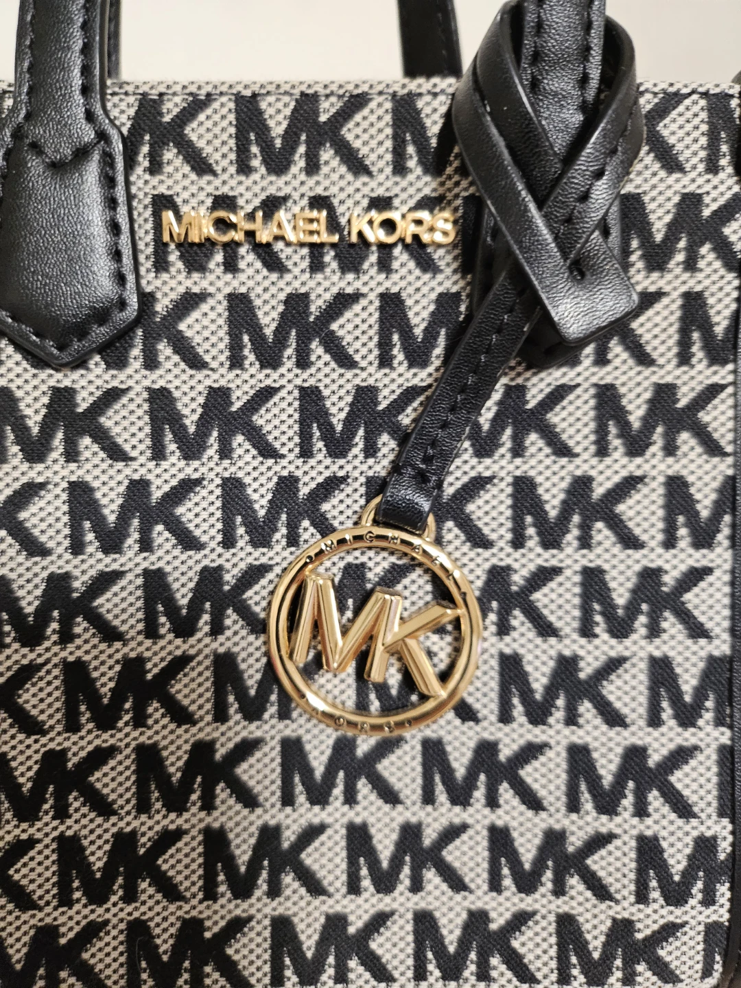 Here's a cute Michael Kors small tote bag! It features the MK logo print all over. It comes with a detachable strap so you can wear it as a crossbody too.