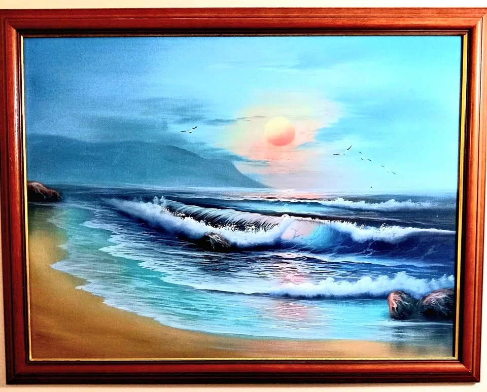 Antique Original Oil Painting Ocean Waves 27 by 21 inches. $60