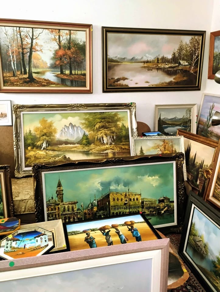 We also have various vintage and antique oil paintings in our family collection built over 43 years. These paintings vary in size from small to extra-large and they are on sale at our home starting from $15 and up.