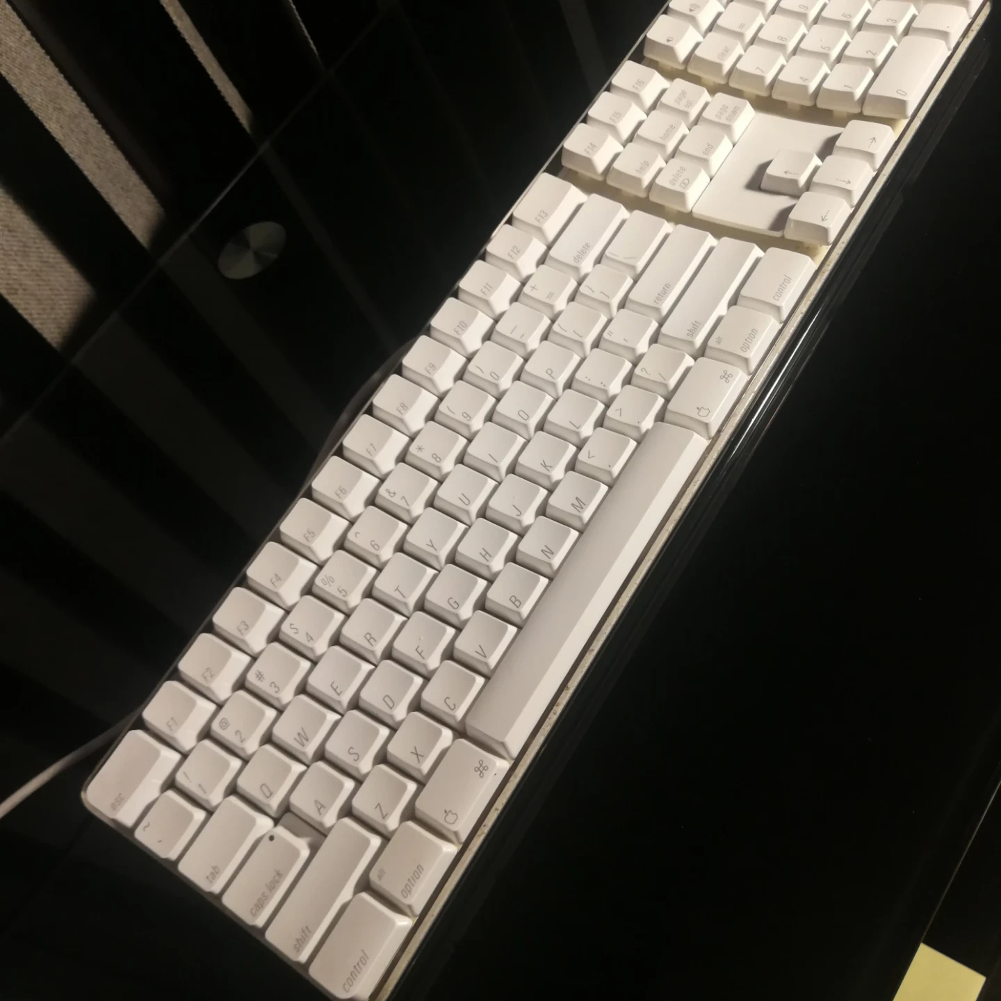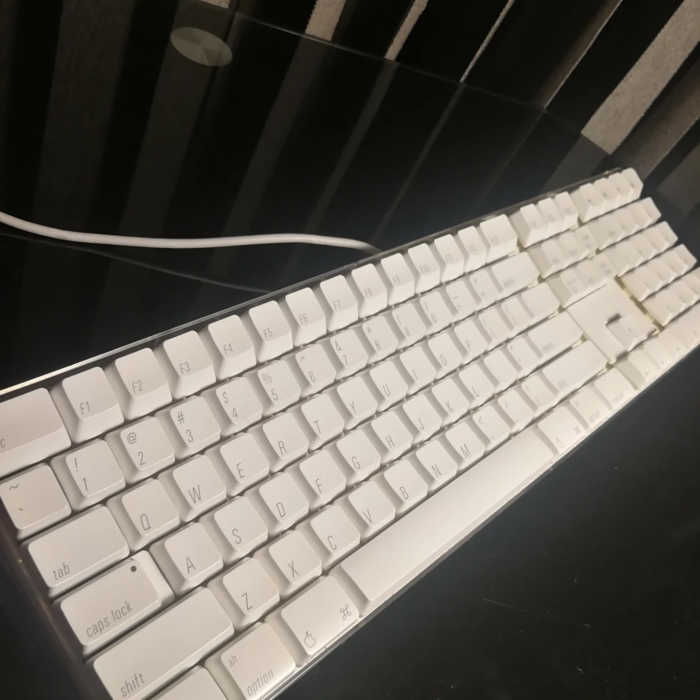 Selling a vintage Apple wired keyboard in white. It's in good condition and fully functional. Perfect for anyone needing a reliable keyboard for their Mac or PC setup.