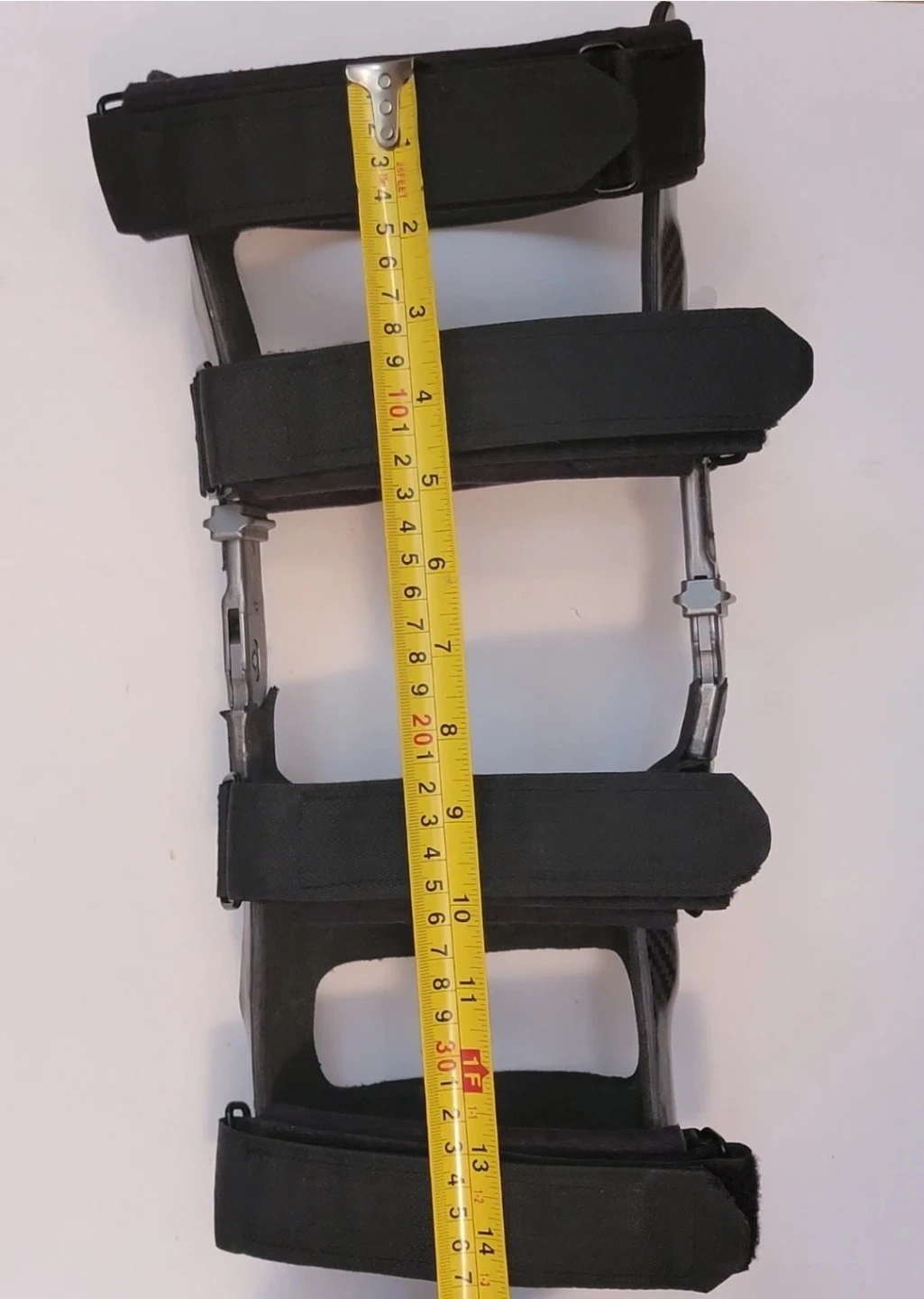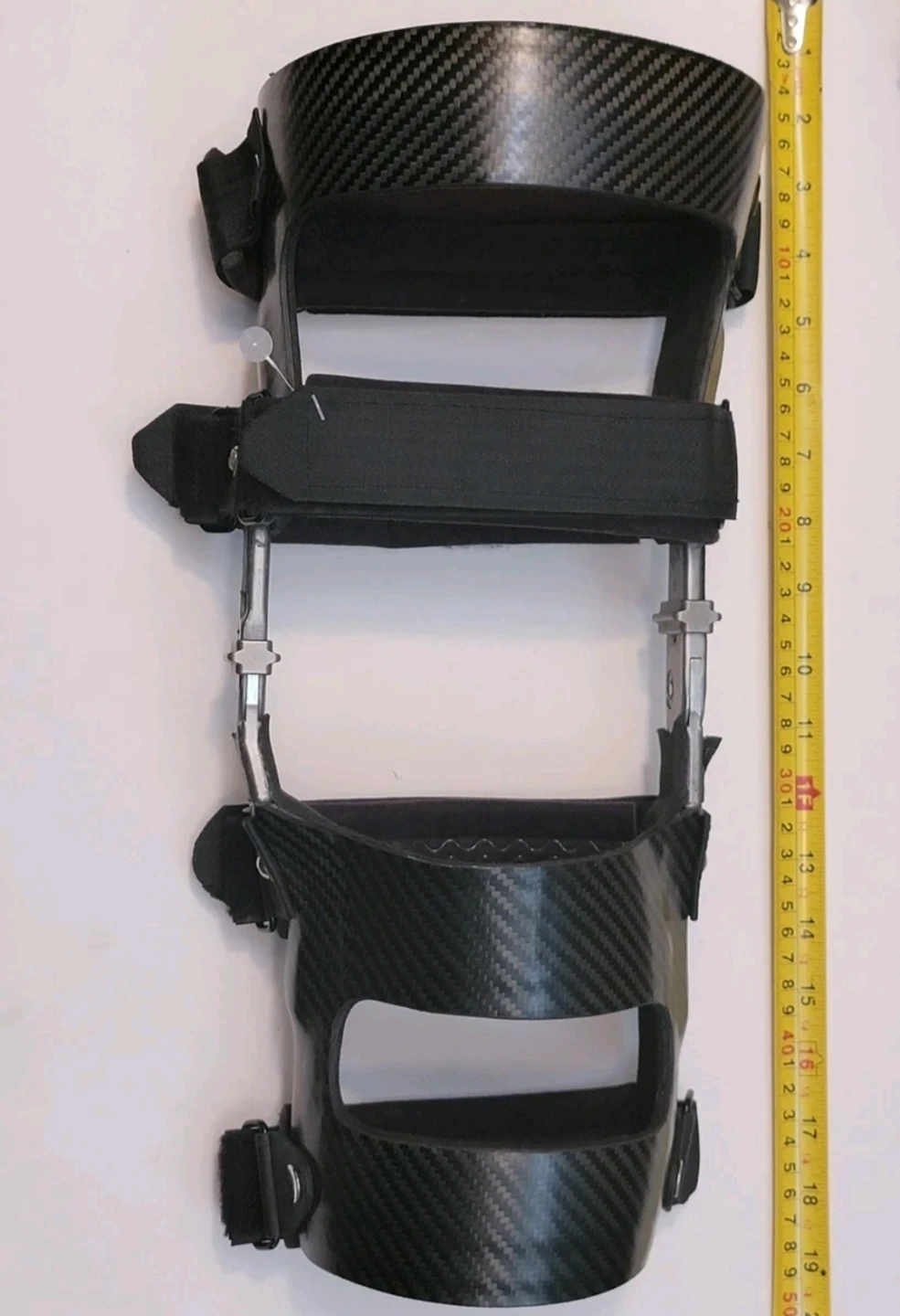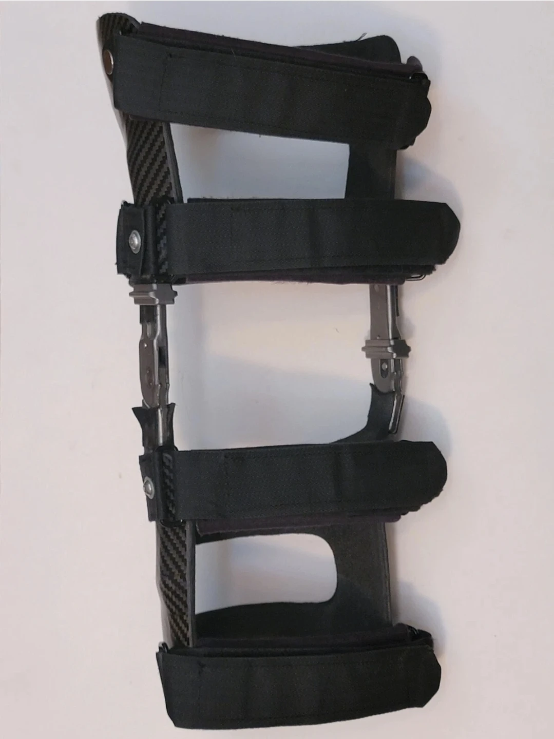 Strong, lightweight knee support brace with a rigid carbon-fiber frame design. Built for stability and everyday use during activity, work, or light sports. Adjustable straps allow a secure, customized fit.