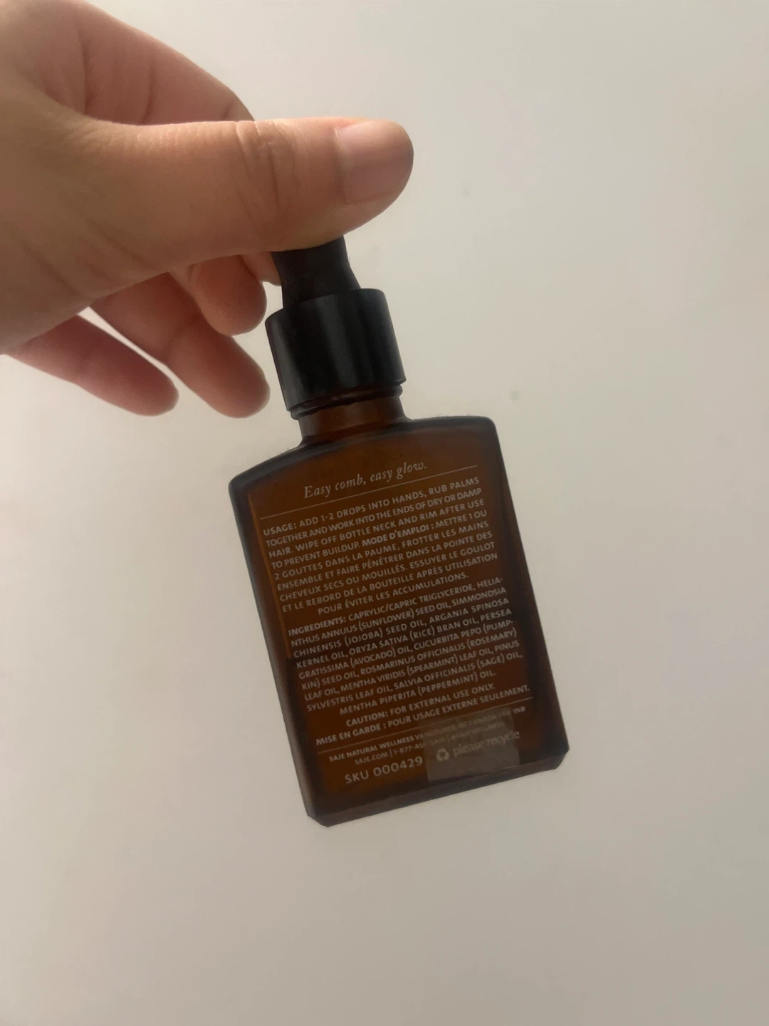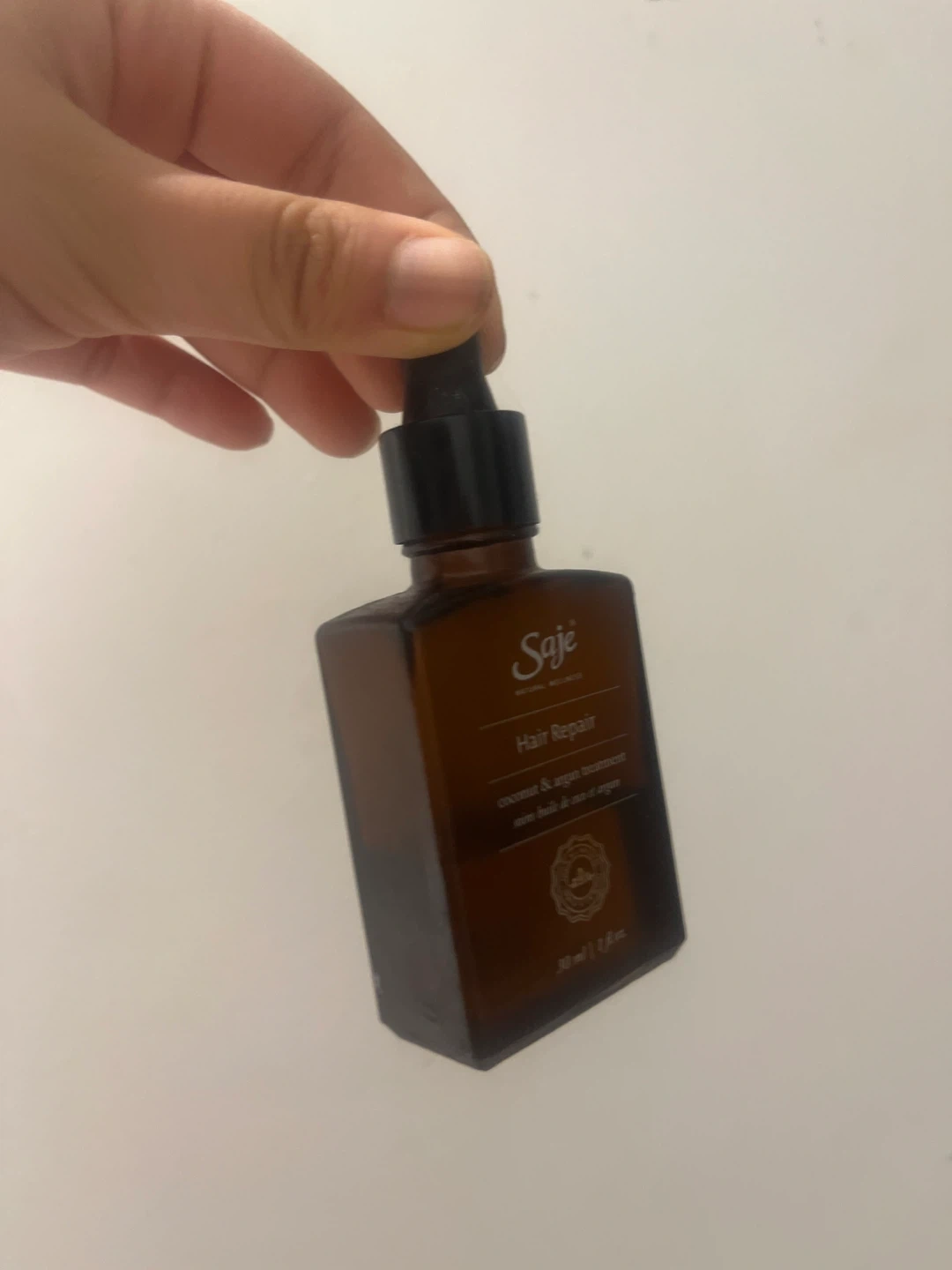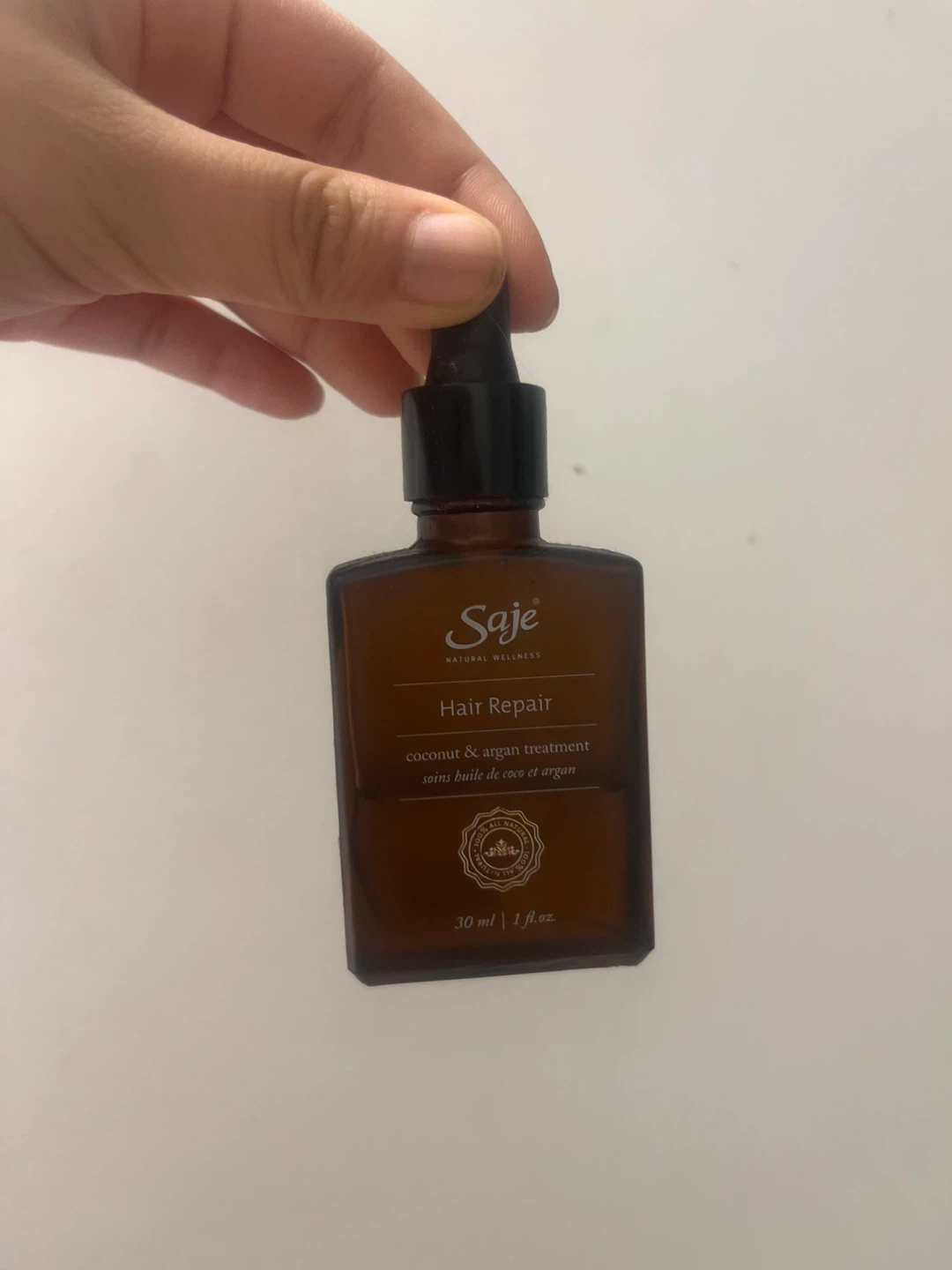 Selling a bottle of Saje Hair Repair, a coconut & argan treatment for your hair. It's in great condition and contains 30 ml / 1 fl oz of product. Add 1-2 drops into hands, rub palms together, and work into ends of dry or damp hair. Wipe off excess from neck and hairline. Easy comb, easy glow!