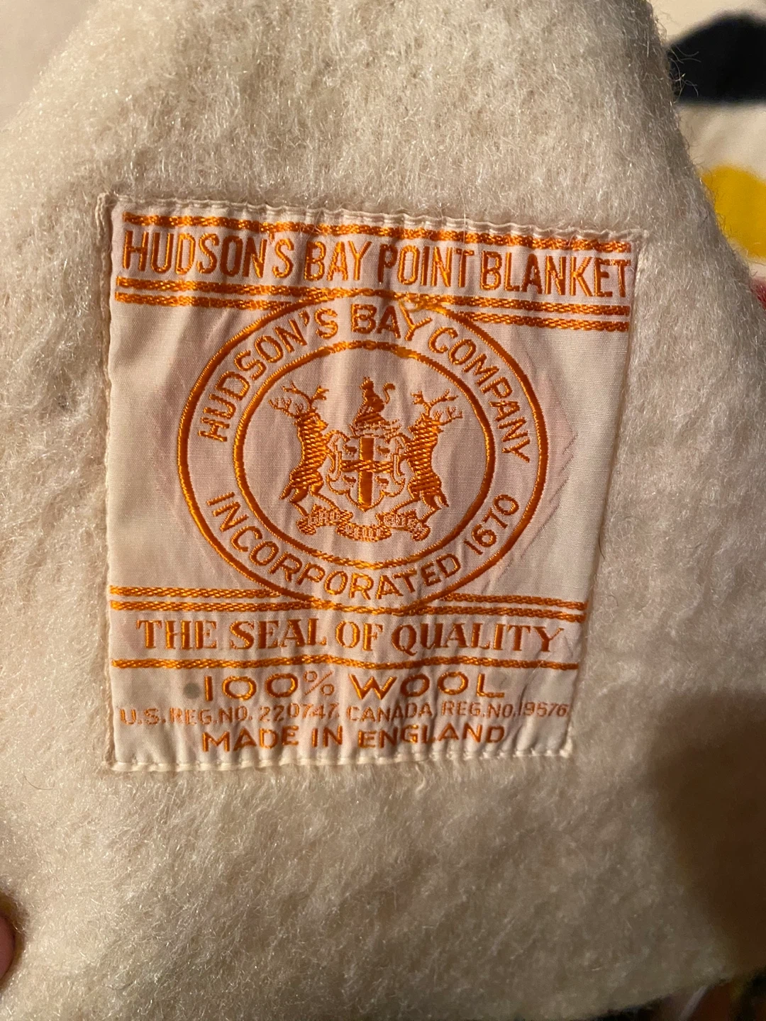 Selling a Hudson's Bay Point Blanket made of 100% wool. It features the classic stripes and is in perfect condition. The seal of quality ensures it's a durable and warm blanket, perfect for those chilly Canadian nights!