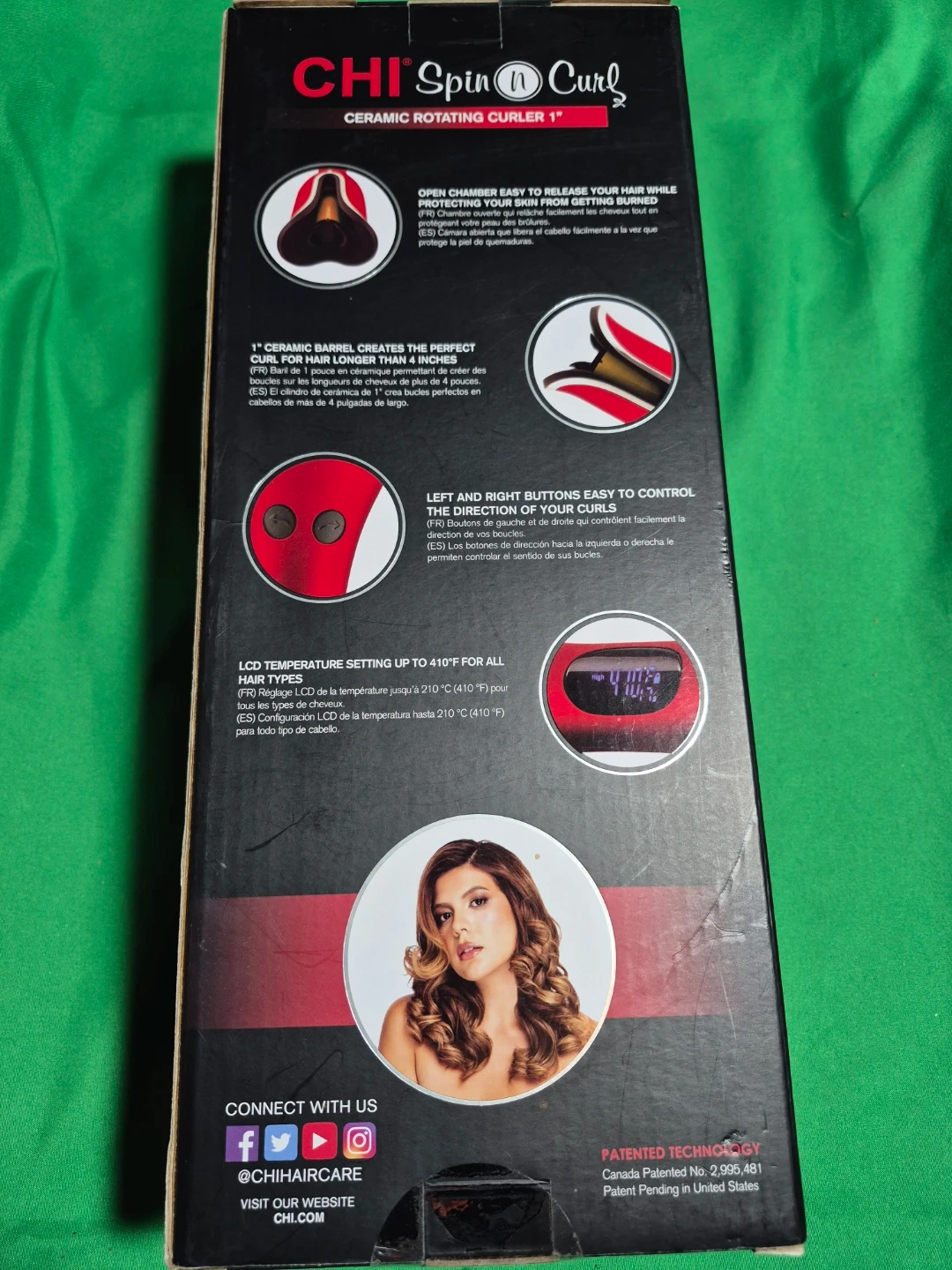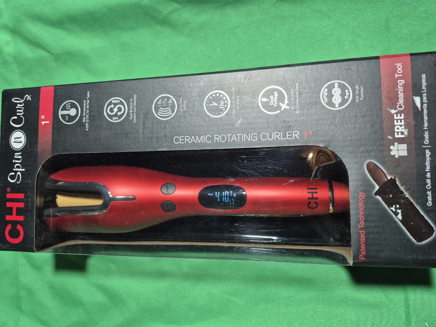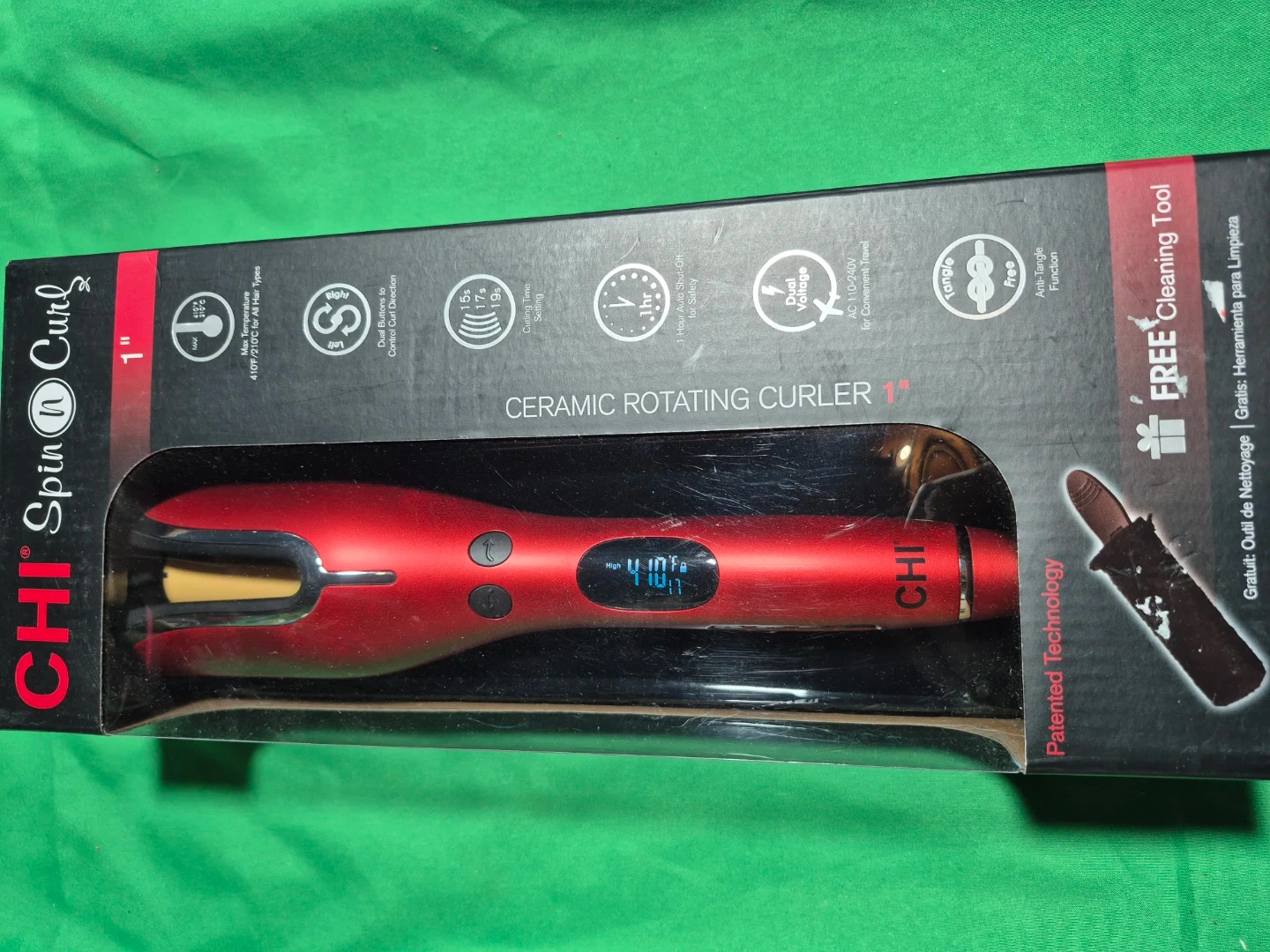I'm selling a CHI Spin n Curl ceramic rotating curler with a 1" ceramic barrel. It creates perfect curls for longer hair, more than 4 inches! It also features left and right buttons to easily control the direction of your curls. The LCD temperature setting goes up to 410°F for all hair types. Box included!