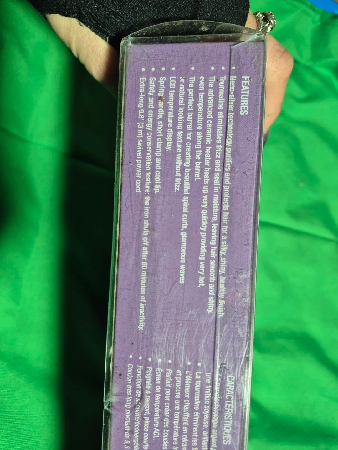 It features nano-silver technology which purifies and protects hair for a silky, shiny, healthy finish. The advanced ceramic heater heats up very quickly providing very hot, even temperature along the barrel. It's perfect for creating beautiful spiral curls, glamorous waves, or natural looking texture without frizz. Also features a spring handle, short clamp and cool tip, and safety and energy conservation feature: the iron shuts off after 60 minutes of inactivity. The extra-long 9.8' (3 m) swivel power cord is also a great feature!