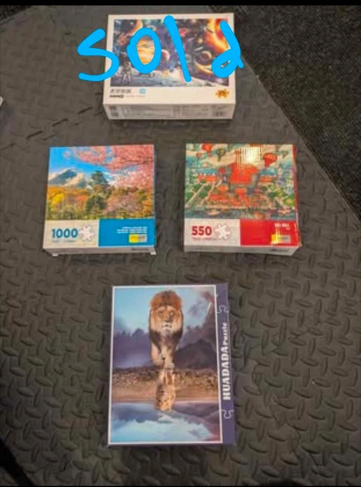 Three different puzzles available. The two middle ones, the tree and the elephant are brand new. The lion one has been put together and then immediately taken apart and packed away. The lion one has letters on the back of the puzzle to help organize. Asking $5 each.
