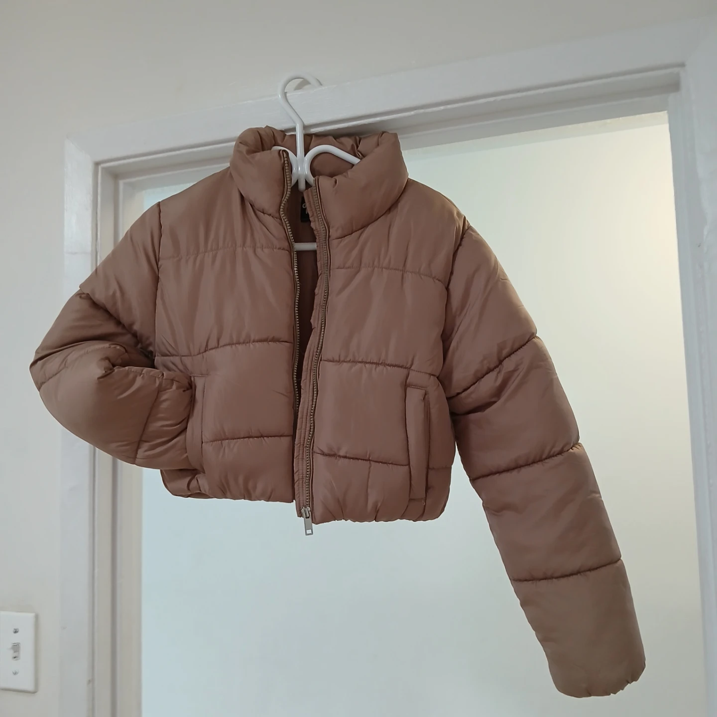 Selling a cute brown puffer jacket! Never worn perfect for layering during the colder months. It's a cropped style and super comfy! Xs womens but can fit child 10- 12L