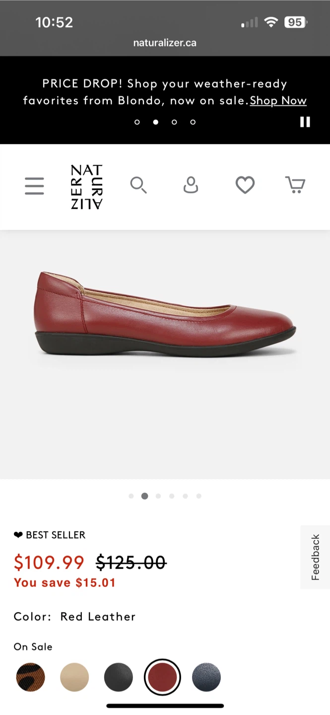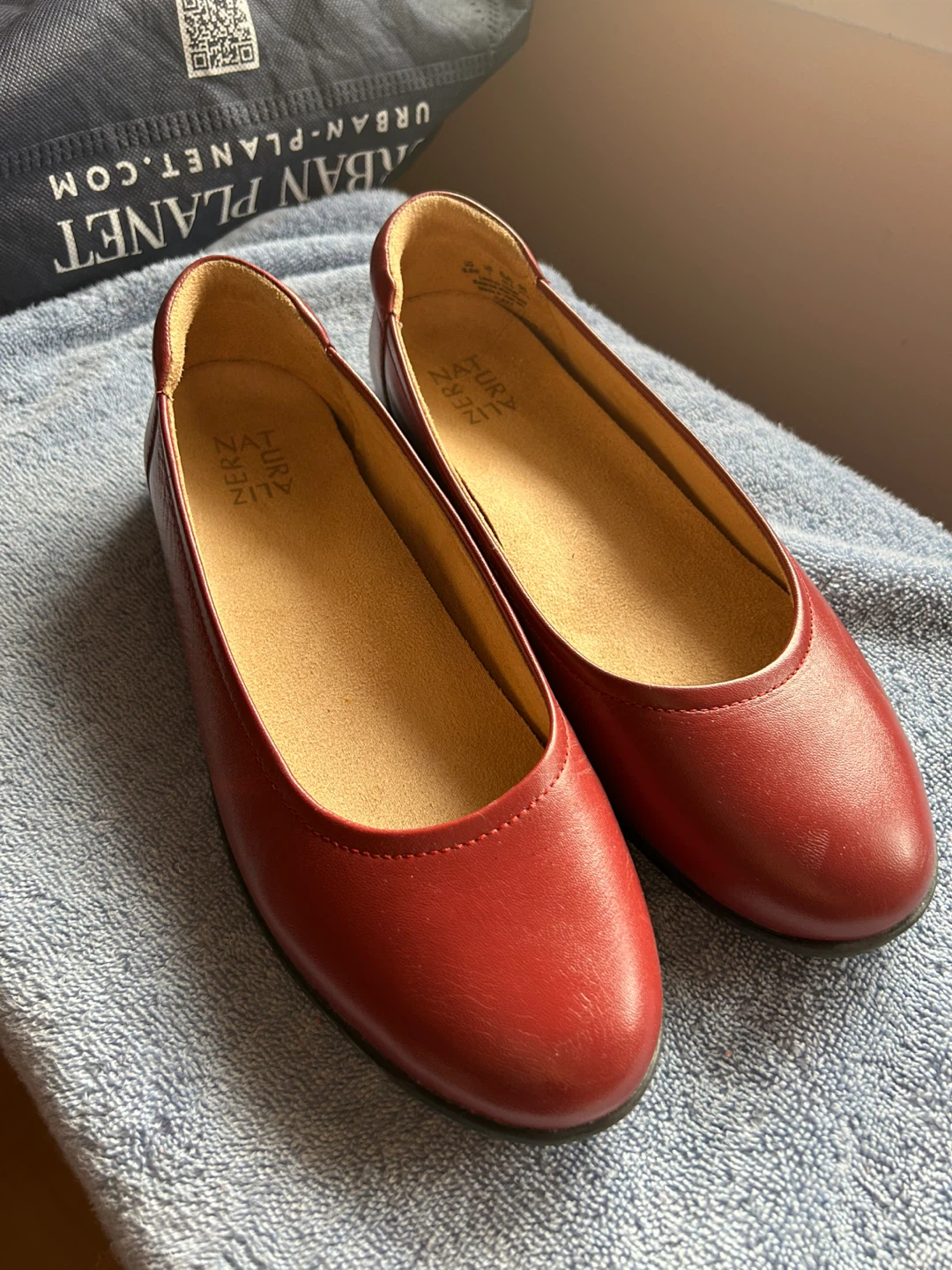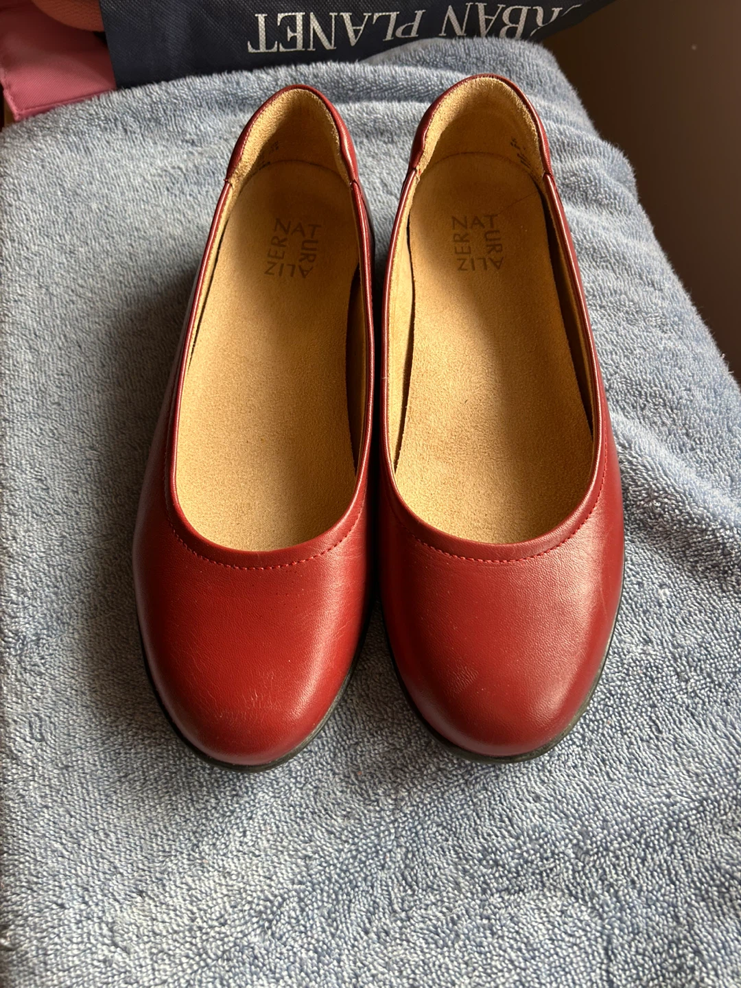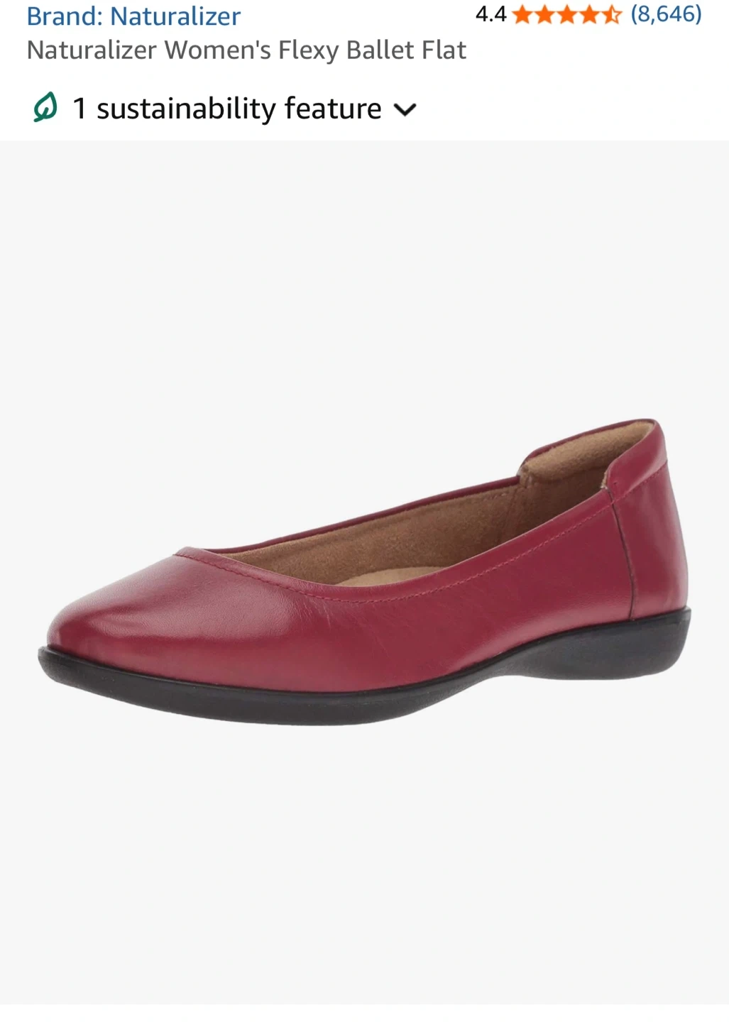 These Naturalizer Flexy Ballet Flats are in a lovely red colour and size 9.5 Wide (WOMENS). They're perfect for adding a pop of colour to your outfit while staying comfy. The flats are made with a leather upper and have a flexible sole. Originally priced at $89.94 on Amazon.