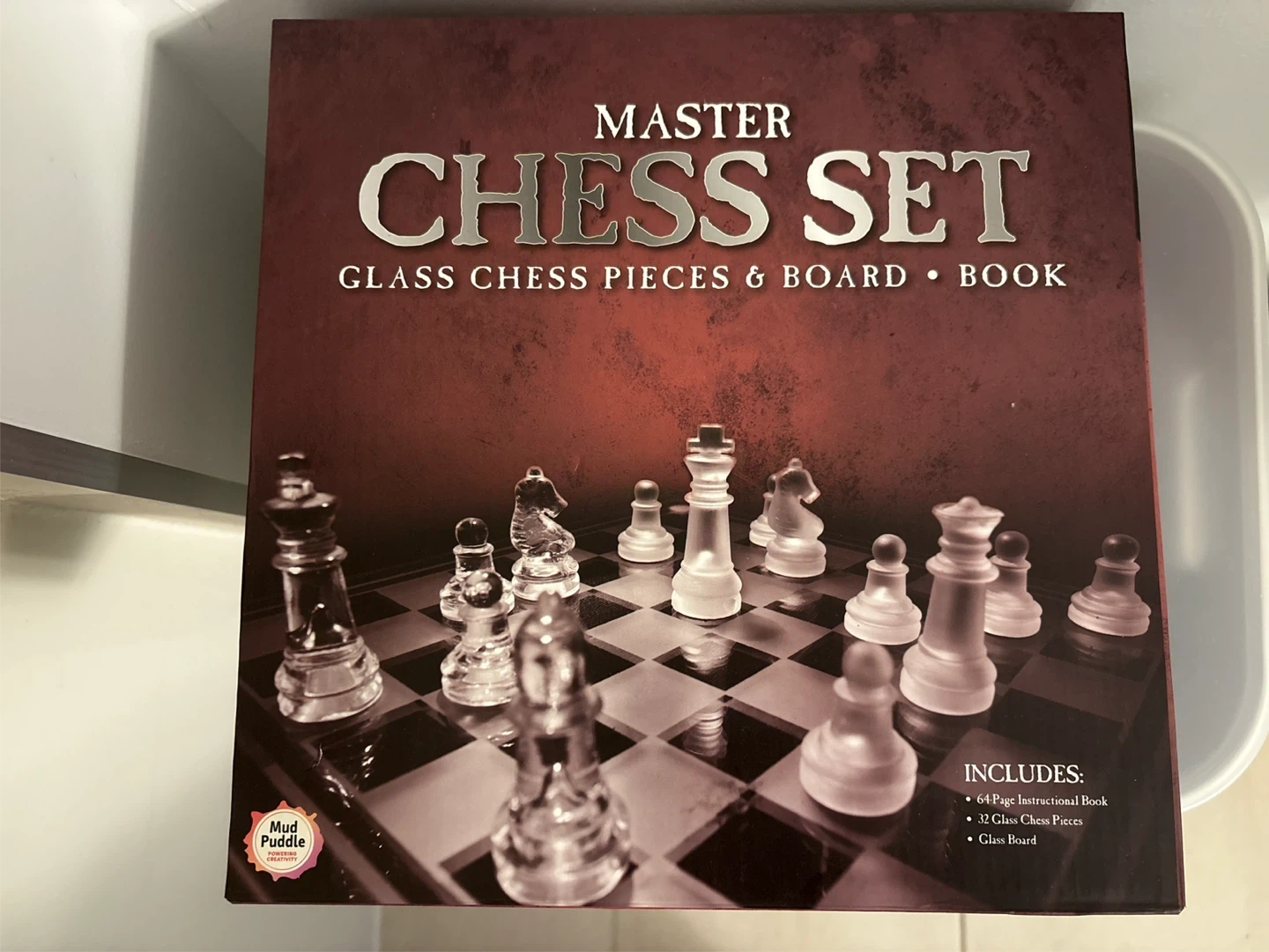 Selling a Master Chess Set that includes glass chess pieces and a glass board! The set also comes with a 64-page instructional book to help you master the game. It's all packed in its original box