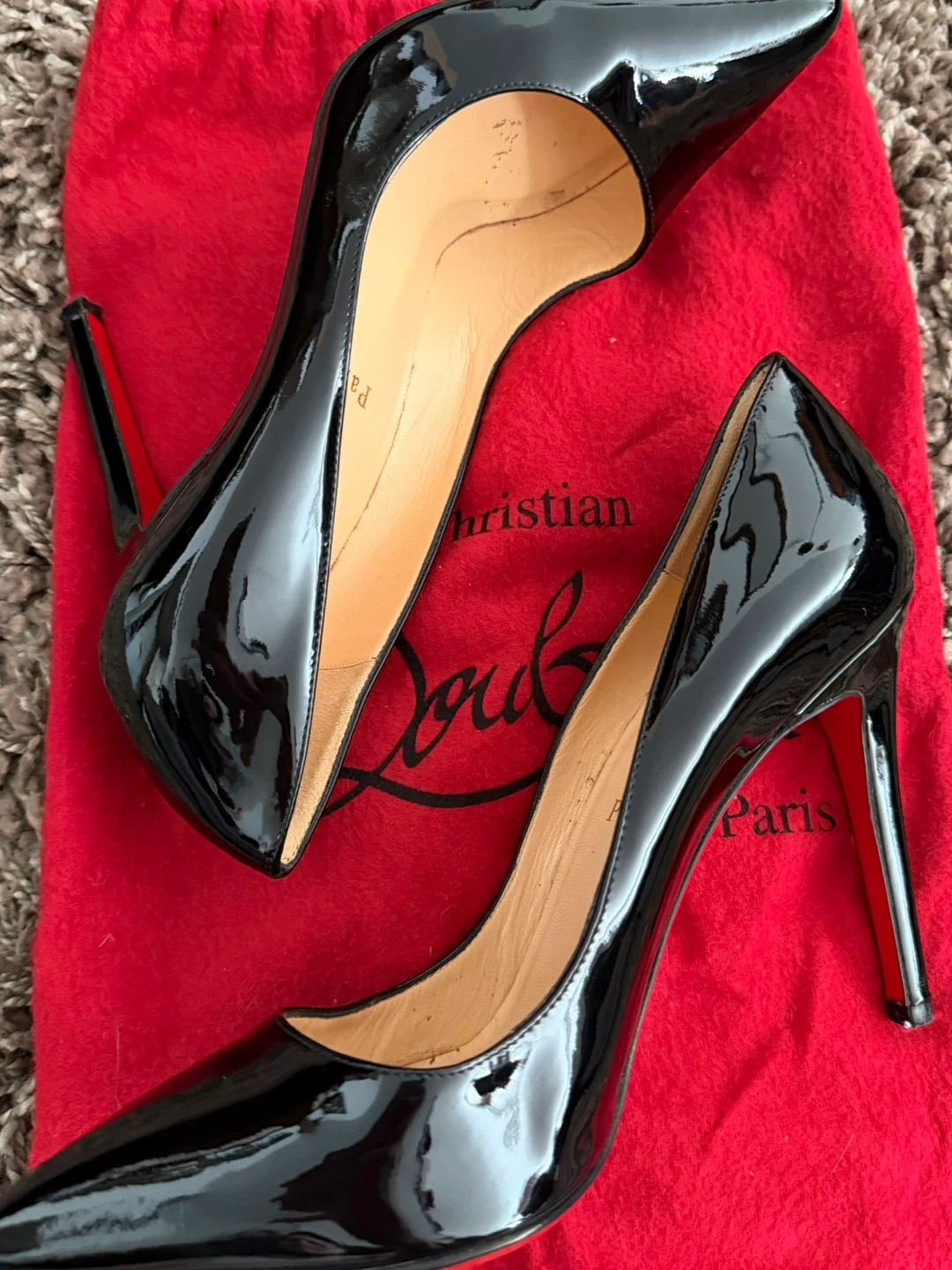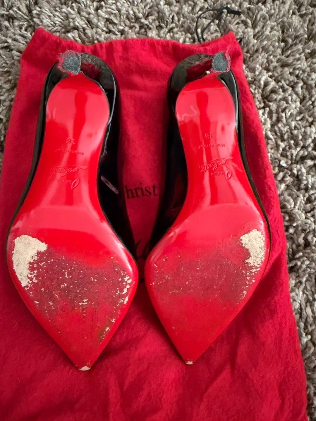 Selling a pair of Christian Louboutin heels. They are a size 38. The soles show some wear, but otherwise they are in good condition. Comes with the original dust bag!
