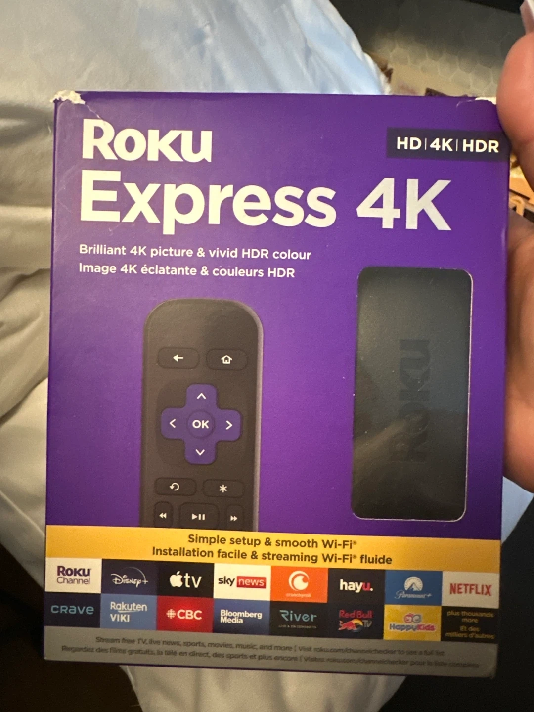 Selling a brand new Roku Express 4K streaming device! Enjoy brilliant 4K picture and vivid HDR colour with simple setup and smooth Wi-Fi. It comes with the box