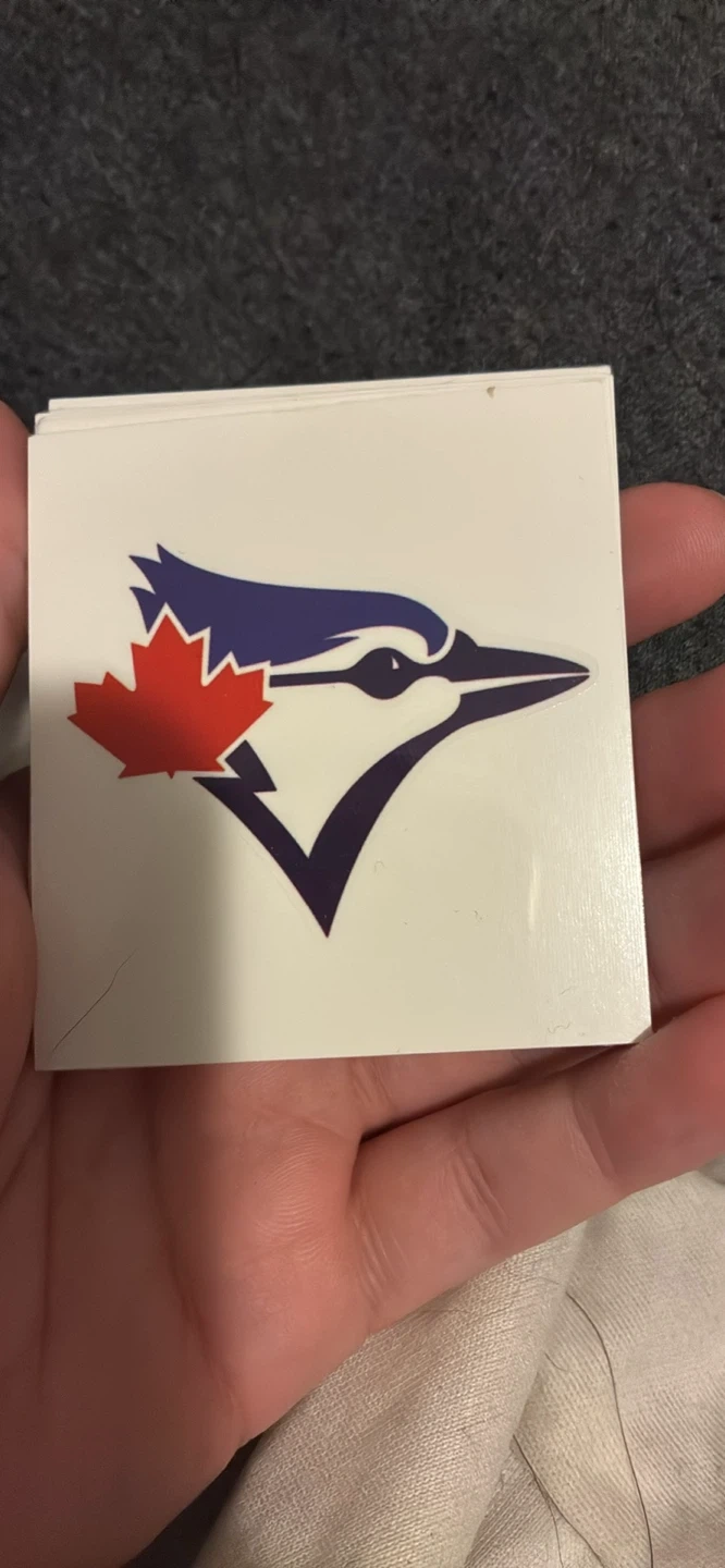 Selling a Toronto Blue Jays sticker! It features the team's logo with a Canadian maple leaf. Perfect for showing your team spirit!