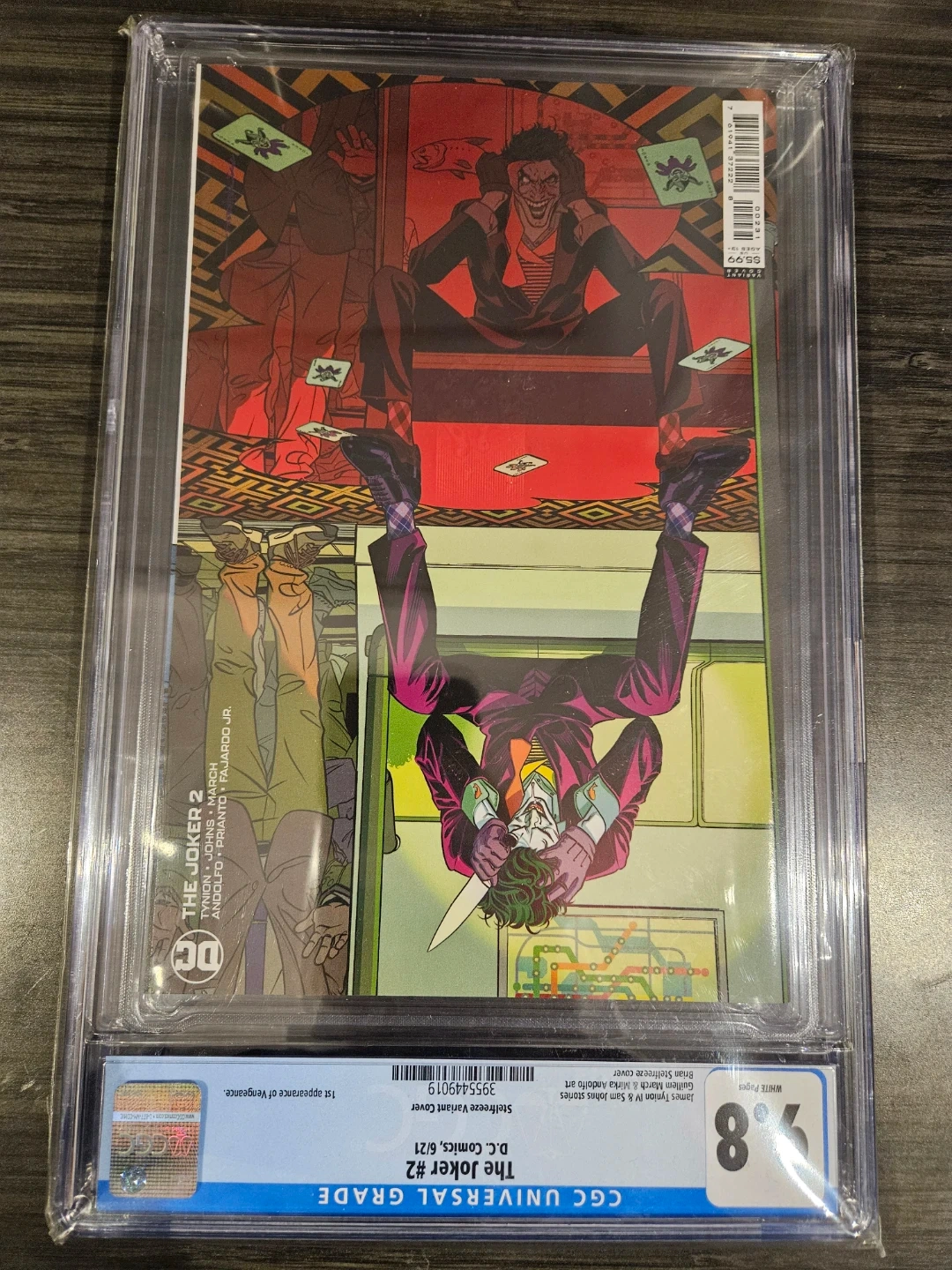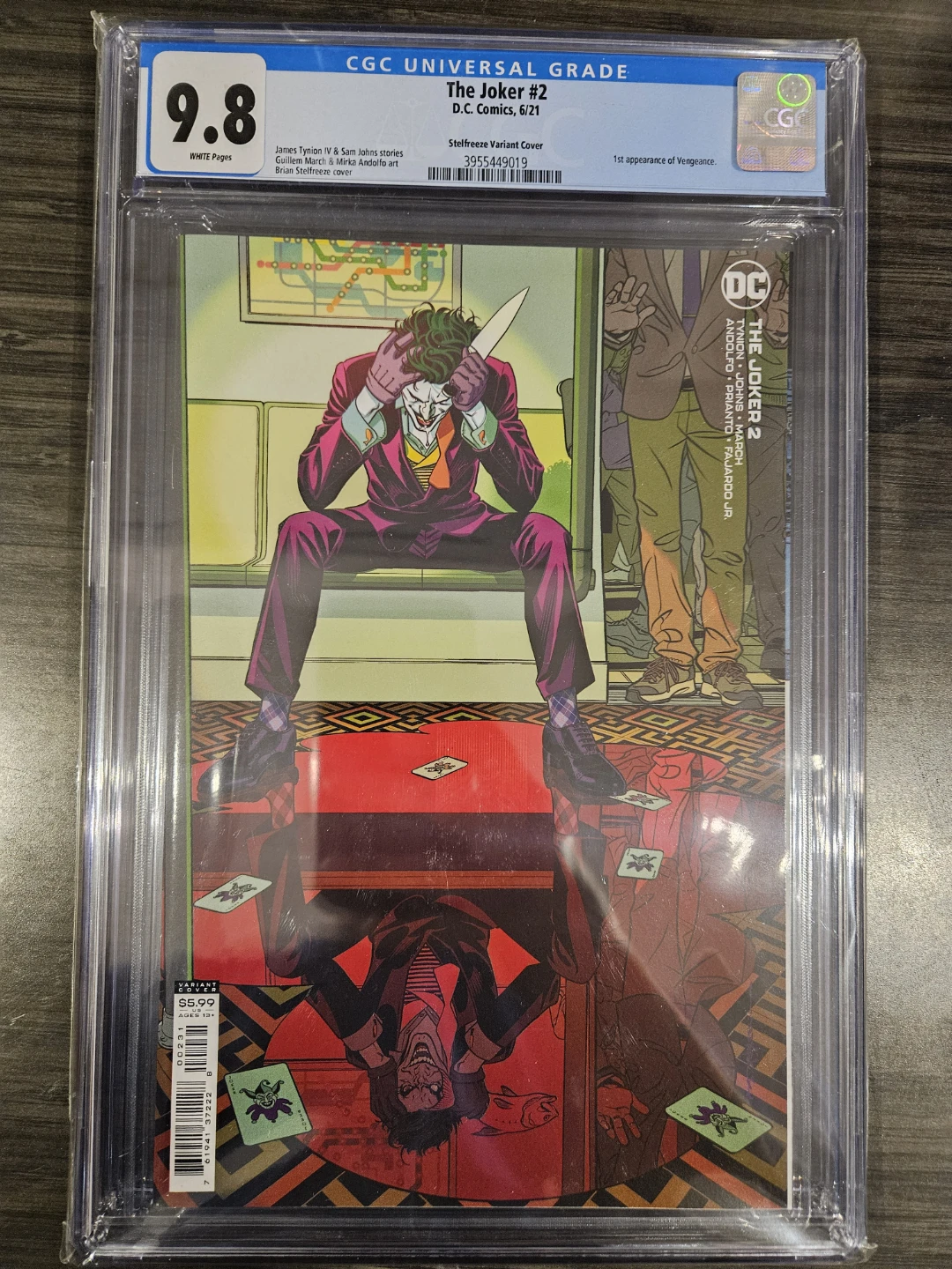 Selling a graded comic book, The Joker #2, certified by CGC with a grade of 9.8. This is a Steelfreeze Variant Cover and a first appearance of Vengeance. D.C. Comics, 6/21