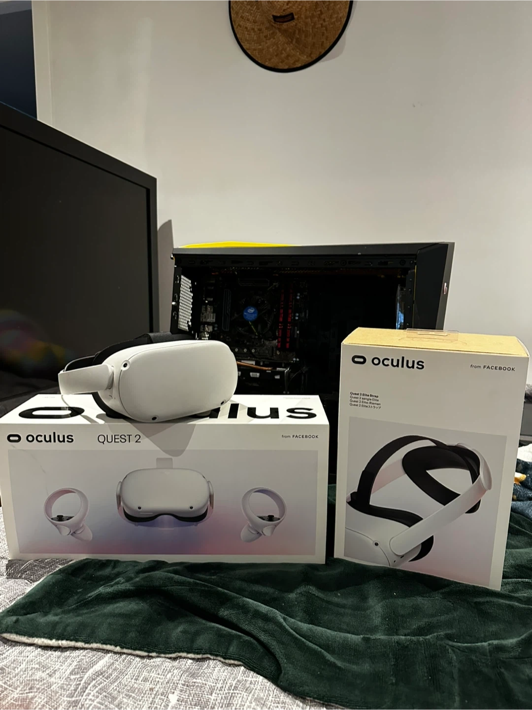 Meta Quest 2 (with box, Lens Anti Scratch rings for glasses and USB C cable for charging) with stock head strap +$250, with Quest 2 Elite Strap +$300