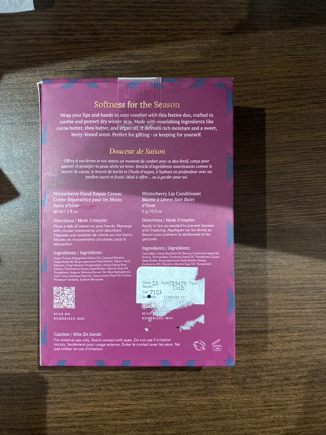 Get ready for the winter season with this Scentuals Winterberry Duo! This kit includes hand and body repair cream with organic shea butter, and a lip conditioner. It's crafted to soothe and protect dry winter skin with cocoa butter, shea butter, and argan oil. Perfect for gifting or keeping for yourself!