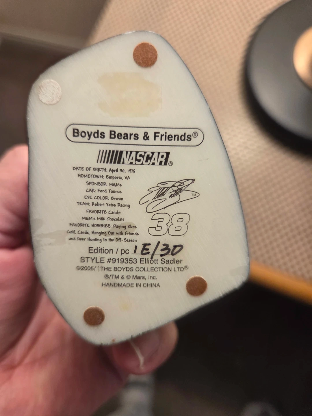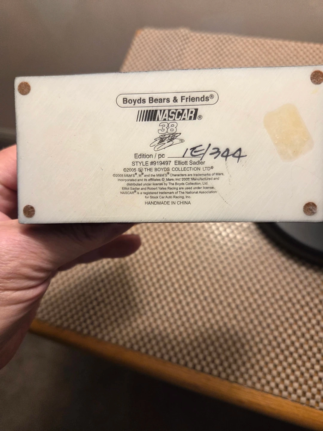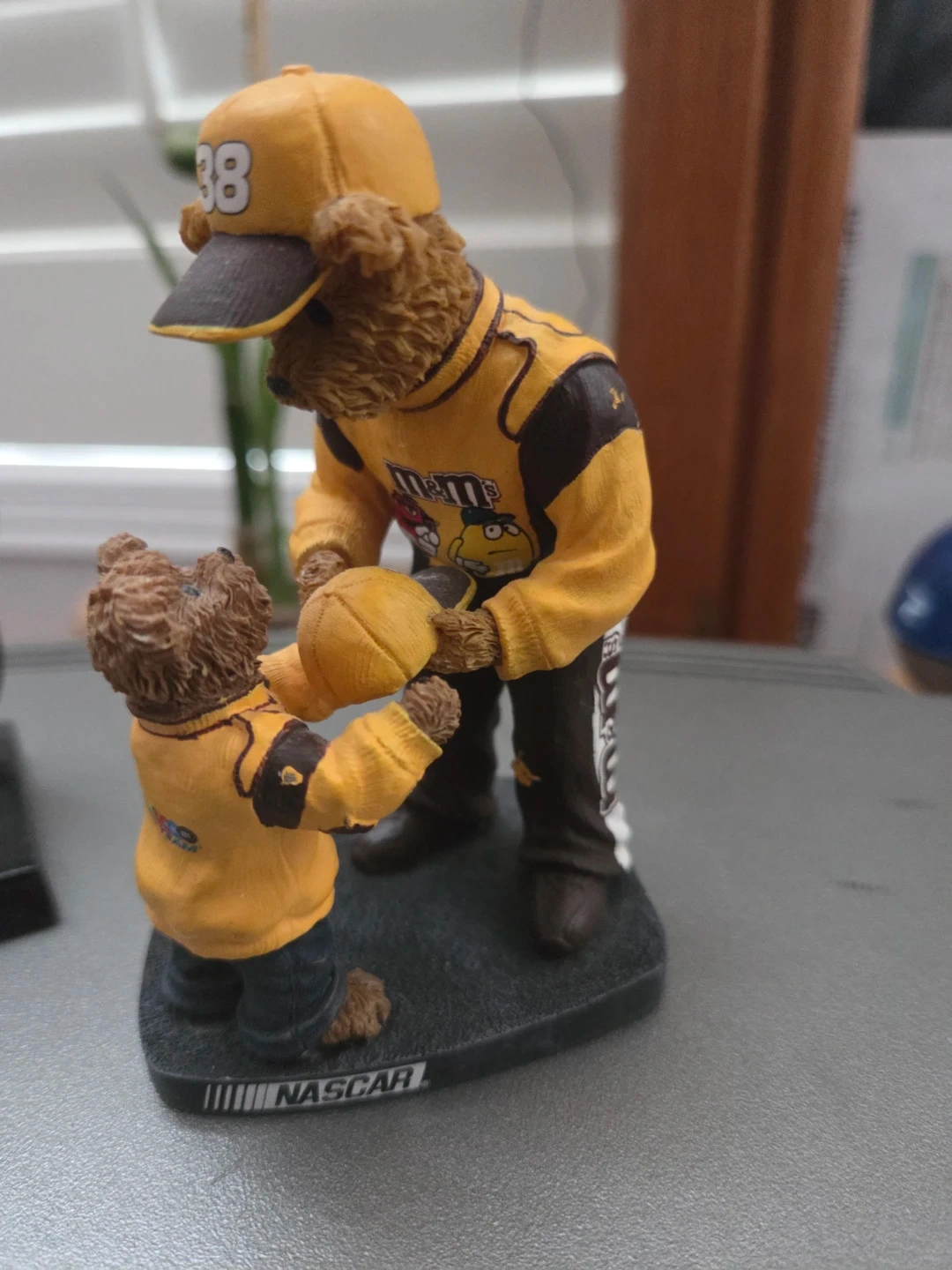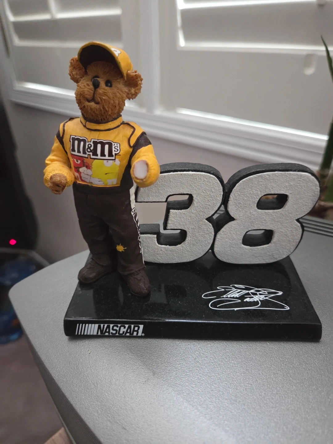 Here's a cute M&M's NASCAR #38 bear figurine! It features bears dressed in racing attire, with the #38 prominently displayed. A fun collectible for any NASCAR or M&M's fan these are numbered in a limited series