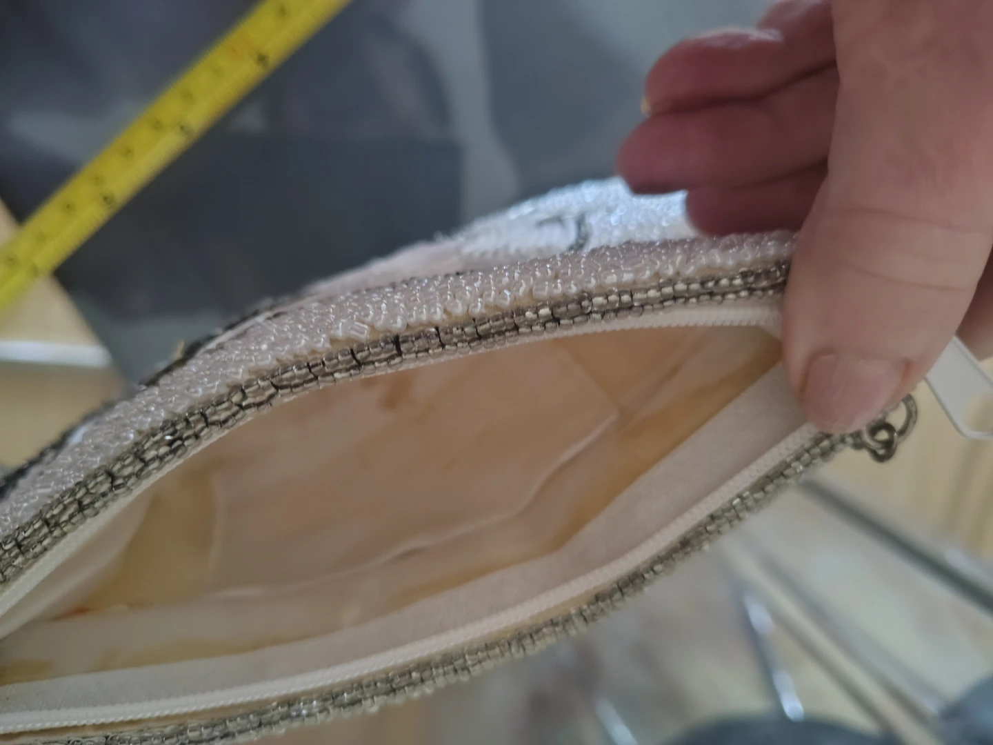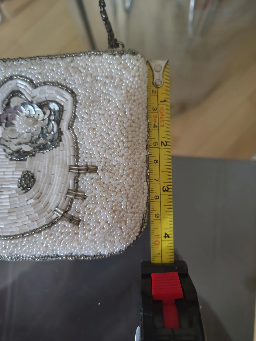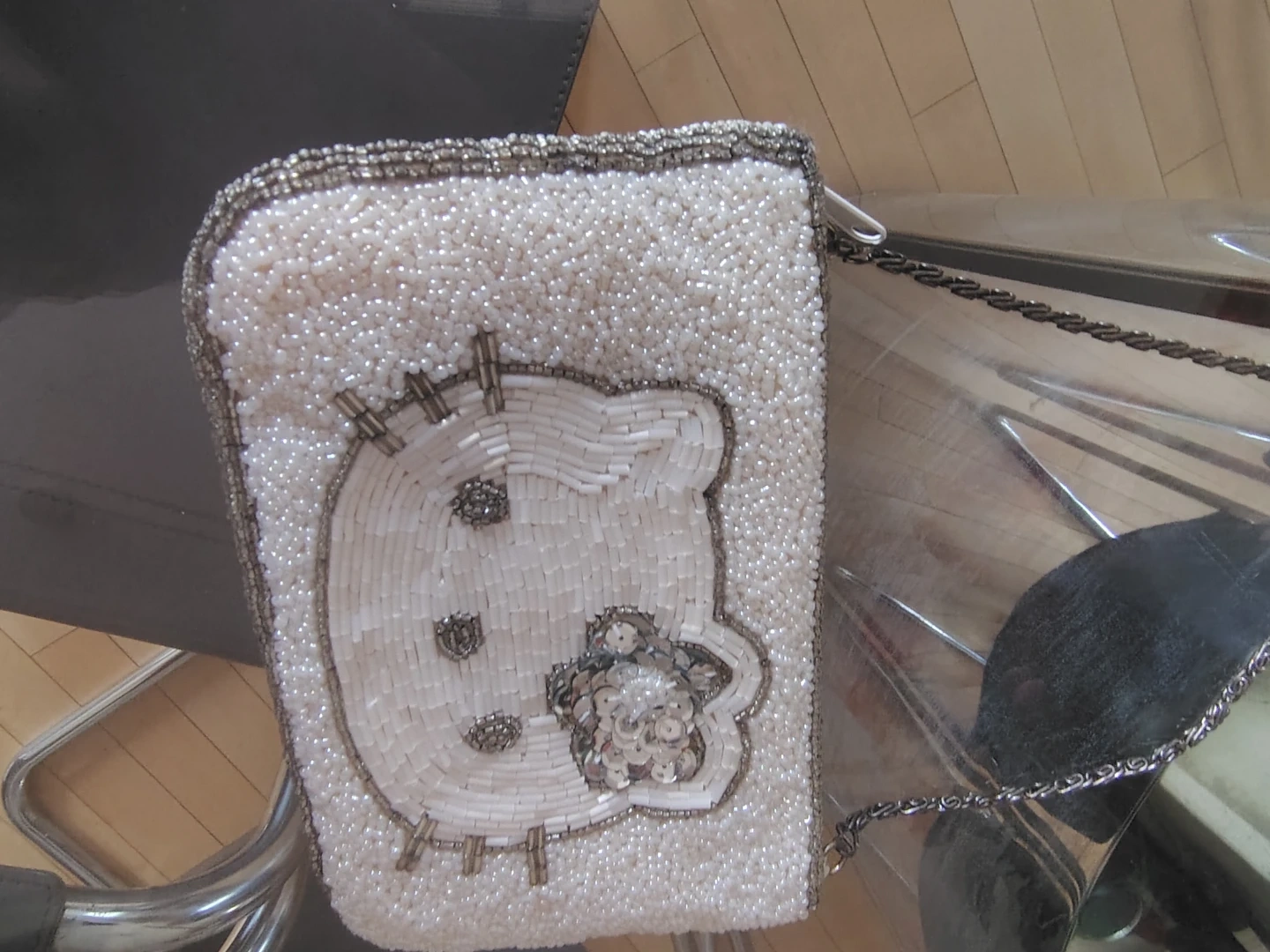This bag was stored in its original cellophane packaging for over 2 decades and was used once only last year. All beads and sequins are fully intact β just one white bead missing as shown in the cover photo. The craftsmanship is exquisite, from the delicate pearl seed beads and bugles to the elegant chain handle. Sanrio quality at its finest.